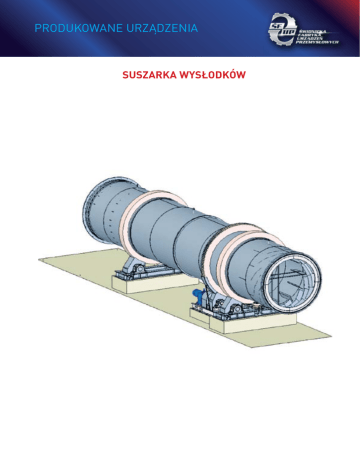 PRODUKOWANE URZĄDZENIA SUSZARKA WYSŁODKÓW PRODUKOWANE URZĄDZENIA Przeznaczenie Suszarka bębnowa przeznaczona jest do suszenia wysłodków buraczanych (z których wstępnie wyprasowano część wody) do zawartości 88-90% suchej substancji. Jest to najlepszy, a zarazem najwygodniejszy dla rolnika sposób konserwacji wysłodków buraczanych. Do pracy w wysłodkowych liniach suszarniczych wykorzystywana jest energia cieplna uzyskiwana ze spalania różnego rodzaju paliw. Do bębnowych suszarek wysłodków wykrzystuje się głównie gorące spaliny z palenisk węglowych i gazowych. Opis działania Wyżęte wysłodki podawane są do wnętrza bębna poprzez rynnę wsypową zamocowaną w końcowej części paleniska. Wysłodki z rynny wsypowej spadają na spiralne łopatki obwodowe w pierwszej części bębna suszarki, a wskutek obrotowego ruchu bębna przesuwają się dalej i wpadają pomiędzy łopatki krzyżowe. W obrębie łopatek krzyżowych stanowiących zasadniczą część wypełnienia bębna, następuje ustawiczne poprzeczne przesypywanie wysłodków z łopatek na łopatki, przy równoczesnym przemieszczaniu wysłodków w kierunku wzdłużnym wskutek współprądowego przedmuchu gorących gazów spalinowych. Wilgoć zawarta w wysłodkach w zetknięciu z gazami spalinowymi zamienia się w parę wodną, która łącznie z tymi gazami i z pewną zawartością pyłu wysłodkowego usuwana jest na zewnątrz przez króćce wylotowe w obudowie dosuszacza. Z komory wysypowej wysłodki wygarniane są do ślimaka odprowadzającego je na zewnątrz. Bęben napędzany jest napędem elektrycznym za pośrednictwem zespołu kół zębatych. Dzięki zastosowaniu napędu falownikowego zapewniono prawidłowy rozruch i płynną regulację podstawowych parametrów pracy bębna. Charakterystyka techniczna Przyjmuje się następujące parametry pracy suszarki wysłodków: • nominalna produkcja wysłodków - 6,5 ton/godz. • wilgotność początkowa wysłodków - 80,0% • temperatura gazów wlotowych - 800 - 1000 oC • wilgotność końcowa wysłodków - 10% • temperatura gazów wylotowych - 120oC TYP Wydajność Średnica wewnętrzna bębna Długość bębna Częstotliwość obrotów bębna Moc napędu Zasilanie Ciężar bębna bez napełnienia Ciężar bębna z napełnieniem Suszarka bębnowa obrotowa Ø3400x18200 6,25 t/h 3 400 mm 18 200 mm 1,43/1,92/2,85 min-1 30 kW 400 V 94 000 kg 123 000 kg PRODUKOWANE URZĄDZENIA Suszarka wysłodków – wymiary gabarytowe PRODUKOWANE URZĄDZENIA ŚWIDNICKA FABRYKA URZĄDZEŃ PRZEMYSŁOWYCH ŚFUP Sp. z o.o. ul. Wincentego Witosa 4, 58-100 Świdnica, Poland tel. +48 74 64 99 100, fax +48 74 640 20 01, e-mail: [email protected], www.sfup.pl