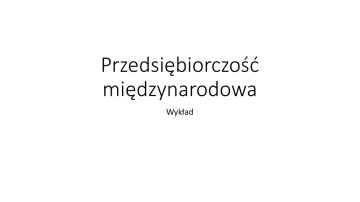 Przedsiębiorczość międzynarodowa Wykład Zakres wykładu • Typy dystansów w procesie internacjonalizacji • Podstawowe teorie internacjonalizacji • Model uppsalski – UM • Modele innowacyjne - IM • Paradygmat eklektyczny Karolina Mazur, prof. UZ 2 Rodzaje dystansów w procesie internacjonalizacji • Dystans geograficzny : odległość, brak wspólnej granicy, różne strefy czasowe, różnice klimatu, zróżnicowanie występujących chodów (Ghemawat 2001, za: Ciszewska-Mlinarič , Wąsowska 2012). • Dystans ekonomiczny: różnice w poziomie dochodu mieszkańców, kosztów i jakości: zasobów naturalnych, finansowych i innych (Ghemawat 2001, za: Ciszewska-Mlinarič , Wąsowska 2012). • Dystans instytucjonalny: np więzi brak uczestnictwa we wspólnocie gospodarczej, brak wspólnej waluty, wrogość polityczna (Ghemawat 2001, za: Ciszewska-Mlinarič , Wąsowska 2012), różnice dotyczące zbioru regulacji prawnych oraz sposobu ich przestrzegania, różnice dotyczące obszaru poznawczego (schematy i stereotypy) oraz normatywnego (przekonania, normy i wartości) (Kostova, Zaheer 1999, za: Ciszewska-Mlinarič , Wąsowska 2012) • Dystans kulturowy: używanie różnych języków, różnorodne grupy narodowościowe, religie, normy społeczne, brak zaufania (Ghemawat 2001, za: Ciszewska-Mlinarič , Wąsowska 2012), różnice w zakresie stosunku do władzy, zaufania, indywidualizmu oraz znaczenia pracy i rodziny (Berry et al. 2010, za: Ciszewska-Mlinarič , Wąsowska 2012) • Dystans psychiczny: postrzegane koszty uczenia się lub redukcji niepewności, wynikające z „różnic dotyczących języka, systemów edukacji, praktyk biznesowych, kultury oraz poziomu rozwoju przemysłu” (Johanson, Vahlne 1977 za: Ciszewska-Mlinarič , Wąsowska 2012). (Ghemawat 2001, cytowane za: Ciszewska-Mlinarič , Wąsowska 2012) Karolina Mazur, prof. UZ 3 Podstawowe teorie internacjonalizacji • Pierwotnie problemem tym zajmowali się: A. Smith, D. Ricardo, B.Ohlin • Kierunek badań: • Efekty międzynarodowej wymiany • Przedmiot międzynarodowej wymiany handlowej • Poziom analizy: branże i sektory Źródło: Gorynia, Jankowska 2007 Karolina Mazur, prof. UZ 4 Model uppsalski • Opracowany przez pracowników uniwersytetu w Uppsali: J. Johansona, F. Wiedersheim-Paula, J.E. Vahlnego (1975-1977) • Rozwijające się przedsiębiorstwo poszukuje przestrzeni na rynkach międzynarodowych • Wejście na te rynki opiera się na poszczególnych etapach Źródło: Gorynia, Jankowska 2007 Karolina Mazur, prof. UZ 5 Model uppsalski: Etapy internacjonalizacji • Eksport sporadyczny - nieregularna działalność eksportowa • Eksport poprzez niezależnych pośredników (agentów) • Utworzenie filii (oddziału) handlowego • Utworzenie filii (oddziału) produkcyjnego Źródło: Johanson, Wiedersheim-Paul, 1975 za: Gorynia, Jankowska 2007 Karolina Mazur, prof. UZ 6 Model uppsalski Źródło: Gorynia, Jankowska 2007 Karolina Mazur, prof. UZ 7 Modele innowacyjne • internacjonalizację jako innowacja z punktu widzenia firmy (The Innovation-Related Internationalization Models – I-M). Źródło: Gorynia, Jankowska 2007 Karolina Mazur, prof. UZ 8 Model sekwencyjny S.T. Cavusgila Etapy zaangażowania na rynku międzynarodowym: 1. Marketing krajowy: 2. Faza przed-eksportowa: Zaangażowanie eksperymentalne 3. Aktywne zaangażowanie 4. Trwałe, zaawansowane zaangażowanie Źródło: Gorynia, Jankowska 2007 Karolina Mazur, prof. UZ 9 Teoria J. Dunninga – OLI – Paradygmat eklektyczny • Czynniki determinujące proces internacjonalizacji: • Przewagi własności (ownership advantages) • Przewagi lokalizacji (location advantages) • Przewagi internalizacji (internalization advantages) Karolina Mazur, prof. UZ 10 Przewaga Forma wejścia na rynek międzynarodowy Własności Internalizacji Lokalizacji Licencjonowanie Tak Nie Nie Eksport Tak Tak Nie FDI – inwestycje bezpośrednie Tak Tak Tak Karolina Mazur, prof. UZ 11 Literatura • Ciszewska-Mlinarič M., Wąsowska A. (2012), Znaczenie dystansu w procesie internacjonalizacji przedsiębiorstw, „Management and Business Administration. Central Europe” vol. 6, no. 119, s. 3–22. • Dunning J. (1979), Toward an Eclectic Theory of International Production: Some Empirical Tests.„Journal of International Business Studies” vol. 11, no. 1, s. 9-31. • Gorynia M., Jankowska B. (2007), Teorie internacjonalizacji, „Gospodarka Międzynarodowa”, nr 10, s. 21-43. Źródło: Gorynia, Jankowska 2007 Karolina Mazur, prof. UZ 12