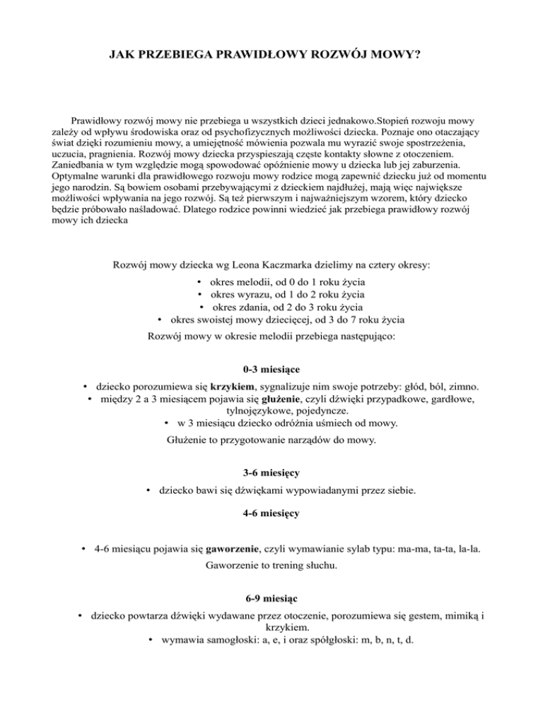 JAK PRZEBIEGA PRAWIDŁOWY ROZWÓJ MOWY?