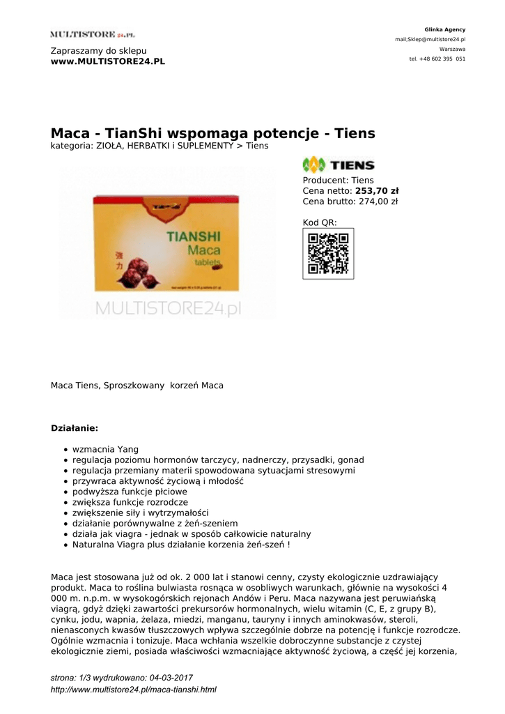 Maca - TianShi wspomaga potencje - Tiens