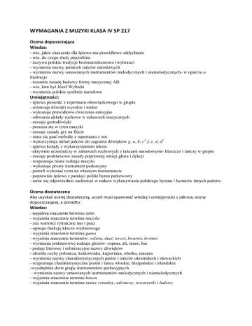 WYMAGANIA Z MUZYKI KLASA IV SP 217