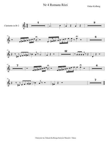 Nr 4 Romans Rózi Clarinetto in B α 2 % 33 3 Τ œ œ œ ≈ Ó œ ∀œ ∀œ œ %Ó 16 ι % Œ ‰ ∀ œι œ œ œ ∀ œ α œ œ ‰ ˙ 25 42 % 6 Ó œ Œ œ Œ 01 œ Œ Ó Τ ι 8 5 Τ œ œ œ Ó − œ œ − œ ‰ œ − ∀ œ Ι ∀ œ œ− œœ œ ∀œ ∀œ œ œ ≈ Ó % Œ ‰ ∀ œι œ œ œ ∀ œ α œ œ ‰ Ó 58 œ ˙− Oskar Kolberg ι ‰œœœœ ‰Œ Τ œ œ œ Ó − œ œ − œ œ ∀ œ œ ∀œ ∀œ Œ Ó ©Instytut im. Oskara Kolberga/Instytut Muzyki i Tańca œ Œ Ó 5 6