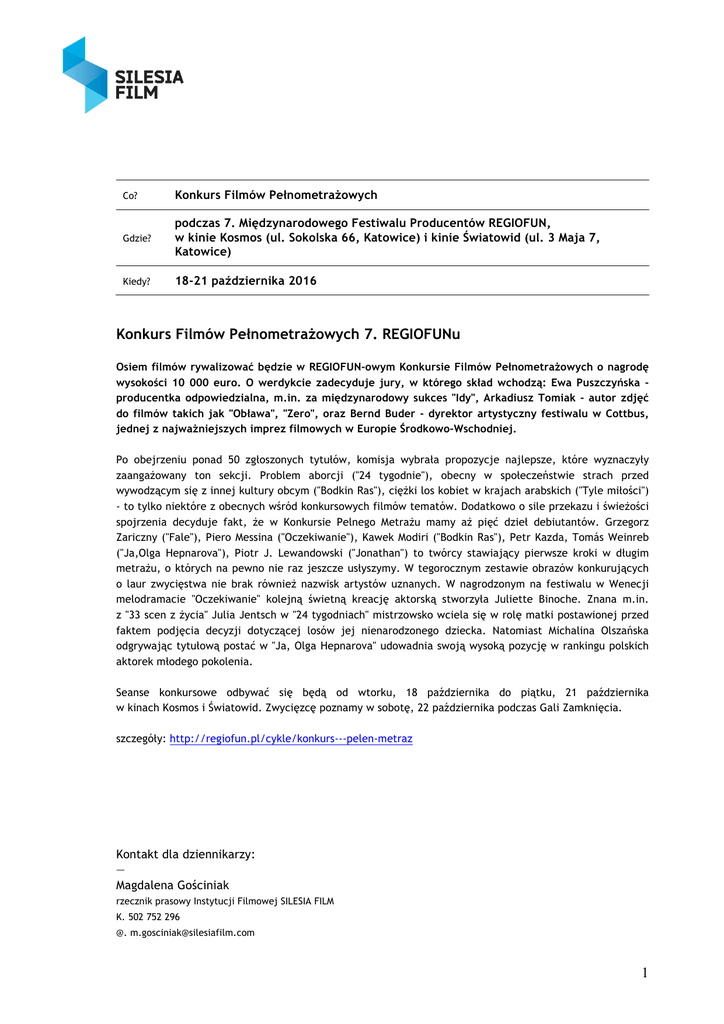 1 Konkurs Filmów Pełnometrażowych 7. REGIOFUNu