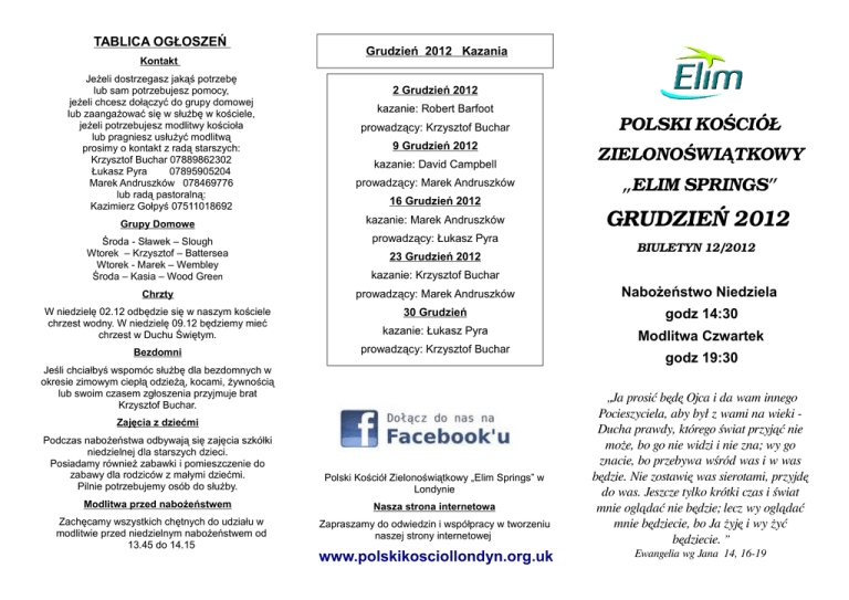 grudzień 2012 - Polski Kościół Chrześcijański Elim Springs w