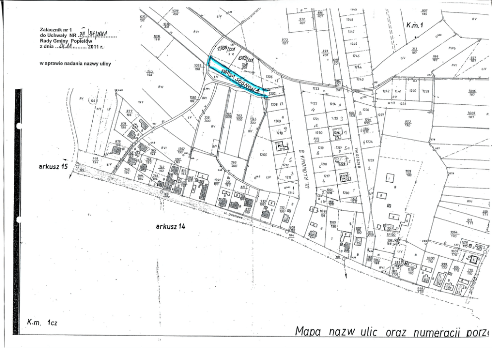 Zatacznik nr 1 do Uchwafy NR .$' Rady Gminy Poplelow zdnia../f(Jl, 2011 r. w sprawie nadania nazwy ulicy K-m. "fez Maya nazw ulic oraz numeracii porn