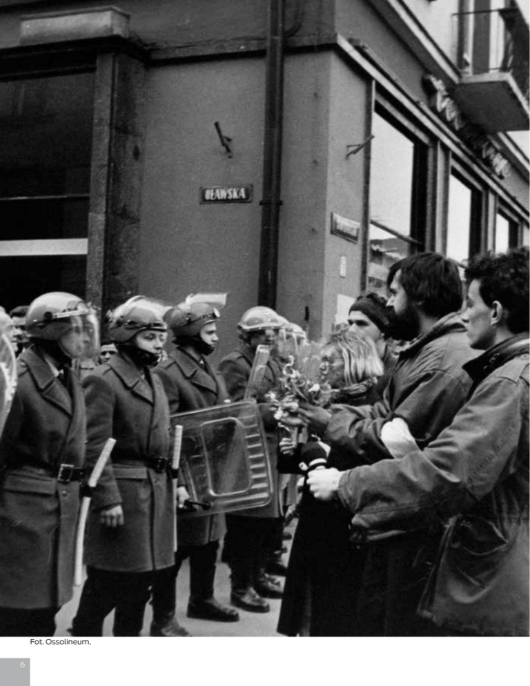 Fot. Ossolineum, 6 TEMAT NUMERU Łukasz Kamiński KRASNOLUDKI I ŻOŁNIERZE WROCŁAWSKA OPOZYCJA LAT OSIEMDZIESIĄTYCH W okresie stanu wojennego i lat następnych Wrocław stał się najsilniejszym ośrodkiem na opozycyjnej mapie Polski. Na taki stan rzeczy złożyło się kilka czynników. Najważniejszym jednak było powszechne zaangażowanie mieszkańców miasta, zapewniających wsparcie „zawodowym” opozycjonistom. Zręby zorganizowanych działań opozycyjnych we Wrocławiu zaczęły powstawać w 1977 r., początkowo głównie w środowisku akademickim. Jeszcze przed Sierpniem ’80 wrocławska opozycja wydawała kilka pism niezależnych (z których największe znaczenie zyskały „Biuletyn Dolnośląski” oraz organ SKS „Podaj dalej”), poszczególne grupy reprezentowały różne nurty ideowe, dbano jednak o unikanie zbędnych konfliktów. Miejscem wypracowywania kompromisu stała się inicjatywa unikalna w skali kraju – Rada Jedności. Po podpisaniu porozumień społecznych, wrocławscy opozycjoniści, z których wielu wspierało strajkujących robotników, zaangażowali się w legalną działalność, głównie w ramach NSZZ „Solidarność” i Niezależnego Zrzeszenia Studentów. W przeciągu szesnastu miesięcy „karnawału Solidarności” w różnorodnych formach niezależnej aktywności uczestniczyły we Wrocławiu tysiące osób. Większość z nich po wprowadzeniu stanu wojennego 13 grudnia 1981 r. zdecydowała się na sprzeciw wobec brutalnego stłumienia ruchu wolnościowego. Twierdza „Solidarności” Pierwsze strajki we Wrocławiu wybuchły już 13 grudnia. W przeciągu kilku najbliższych dni objęły one 34 zakłady pracy i instytucje. Już pierwszej niedzieli w Zajezdni nr 7 powołany został Regionalny Komitet Strajkowy, skupiony wokół wiceprzewodniczącego Zarządu Regionu Piotra Bednarza. Dzięki podjęciu decyzji o powrocie do Wrocławia internowania uniknął także przewodniczący dolnośląskiej „Solidarności” – Władysław Frasyniuk. W skład RKS 14 grudnia weszło dziesięciu działaczy, a obok wspomnianych liderów także skarbnik regionu, Józef Pinior. Był on współorganizatorem akcji, dzięki której ocalono przed konfiskatą 80 mln ze związkowego konta. Fundusze te w znaczący sposób ułatwiły działalność podziemną w pierwszych miesiącach stanu wojennego. W następnych dniach członkowie RKS, przenosząc się do kolejnych przedsiębiorstw, próbowali koordynować akcję protestacyjną we Wrocławiu i całym regionie. Jednakże przyjęta taktyka niestawiania oporu jednostkom ZOMO pacyfikującym kolejne zakłady i ponownego podejmowania strajku nie sprawdziła się – protesty załamały się 17 grudnia. Następnego dnia pochowano pierwszą ofiarę stanu wojennego we Wrocławiu – inż. Tadeusza Kosteckiego, który zmarł na zawał serca w trakcie pacyfikacji przez ZOMO gmachu Politechniki. Łącznie w trakcie likwidacji kolejnych strajków zatrzymano 1200 osób. 7 Fot. Ossolineum, Internowania w pierwszą noc stanu wojennego uniknął także Kornel Morawiecki. Dysponował on zakonspirowaną strukturą współpracowników „Biuletynu Dolnośląskiego”, dzięki czemu mógł natychmiast przystąpić do organizacji poligrafii RKS. Już 14 grudnia ukazał się pierwszy „wojenny” numer regionalnego organu Związku „Z Dnia na Dzień”. Dzięki wysiłkowi odciętej od świata redakcji (ze względów bezpieczeństwa przez kilka miesięcy nie opuszczano kryjówki), kierowanej przez Romualda Lazarowicza, pismo w początkowym okresie ukazywało się trzy razy w tygodniu! Z czasem intensywność druku osłabła, zmieniały się zespoły redakcyjne, do „Z Dnia na Dzień” należy jednak niekwestionowany rekord Polski – w podziemiu ukazały się 394 numery, nakład sięgał 40 tysięcy egzemplarzy. Okres bezpośrednio po zdławieniu grudniowych protestów był niewątpliwie najtrudniejszym doświadczeniem dla działaczy „Solidarności”. Część członków RKS została zatrzymana, trójka liderów ukrywała się. Trwały jednak prace nad koncepcją dalszej działalności, organizowano konspiracyjne struktury zakładowe i ponadzakładowe, w czym wiodącą rolę odgrywał Tadeusz Świerczewski. Na początku 1982 r. działało już 8 kilka wyspecjalizowanych agend RKS – poligrafia i kolportaż, kontakty z zakładami pracy, kontrwywiad, kancelaria szefa. Stopniowo nawiązywano kontakty z innymi regionami. Jeden cel – różne metody RKS początkowo poparł inicjatywę wrocławianina ukrywającego się w Gdańsku, Eugeniusza Szumiejki, utworzenia scentralizowanego kierownictwa podziemia – Ogólnopolskiego Komitetu Oporu. Po kilku tygodniach Frasyniuk wycofał się W latach osiemdziesiątych we Wrocławiu ukazywało się 386 tytułów pism podziemnych. jednak z tego projektu, co nasiliło jego konflikt z Morawieckim. Spór związany był przede wszystkim z fundamentalną kwestią wyboru metod walki. Przewodniczący RKS uznawał, iż najbardziej skuteczną bronią pozostają strajki (wiosną 1982 r. zorganizowano je kilkakrotnie), przeciwny był organizacji demonstracji ulicznych. Nasilający się konflikt doprowadził do opuszczenia RKS przez grupę zwolenników Morawieckiego. W początkach czerwca 1982 r. powołali oni nowe pismo – „Solidarność Walcząca”. Wkrót- TEMAT NUMERU Gdy nastał stan wojenny, już wtedy byłem działaczem Solidarności szczebla regionalnego, byłem również wiceprzewodniczącym zarządu regionu Dolny Śląsk i członkiem Komisji Krajowej NSZZ Solidarność. W dniu wprowadzenia Stanu Wojennego wracałem z obrad komisji. Już w Poznaniu dowiedziałem się, że były aresztowania działaczy związku, powiedziano mi również, że Dworzec Główny we Wrocławiu jest obstawiony i czeka na mnie milicja. W związku z tym maszynista zwolnił szybkość jazdy pociągu tak, że na stacji Lipa Piotrowska mogłem wyskoczyć, a tym samym uniknąć aresztowania. Zobaczyłem ruchy wojsk, co prz