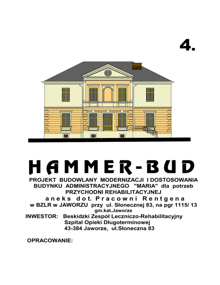 4. HAMMER-BUD PROJEKT BUDOWLANY MODERNIZACJI I DOSTOSOWANIA BUDYNKU ADMINISTRACYJNEGO "MARIA" dla potrzeb PRZYCHODNI REHABILITACYJNEJ a n e k s d o t. P r a c o w n i R e n t g e n a w BZLR w JAWORZU przy ul. Słonecznej 83, na pgr 1115/ 13 gm.kat.Jaworze INWESTOR: Beskidzki Zespół Leczniczo-Rehabilitacyjny Szpital Opieki Długoterminowej 43-384 Jaworze, ul.Słoneczna 83 OPRACOWANIE: OPRACOWANIE ZAWIERA: I. II. Opis techniczny Projekt architektoniczno-budowlany – część rysunkowa 1. 2. RZUT PARTERU - rentgen RZUT PARTERU 1:50 1:100 III. IV. V. Przedmiar robót Kosztorys inwestorski Specyfikacja techniczna wykonania i odbioru robót bud. 2 OPIS TECHNICZNY PROJEKT BUDOWLANY MODERNIZACJI I DOSTOSOWANIA BUDYNKU ADMINISTRACYJNEGO "MARIA" dla potrzeb PRACOWNI RENGENOWSKIEJ w BZLR w JAWORZU przy ul. Słonecznej 83, na pgr 1115/ 13 gm.kat.Jaworze INWESTOR: Beskidzki Zespół Leczniczo-Rehabilitacyjny Szpital Opieki Długoterminowej 43-384 Jaworze, ul.Słoneczna 83 OPRACOWANIE: mgr inŜ.arch. Halina Mglej-Rudnicka Bielsko-Biała , sierpień 2009r. 3 1. Dane ogólne 1.1.Nazwa i adres obiektu budowlanego Budynek administracyjny „MARIA” w BZLR w JAWORZU przy ul. Słonecznej 83, na pgr 1115/ 13 1.2.Inwestor Beskidzki Zespół Leczniczo-Rehabilitacyjny Szpital Opieki Długoterminowej 43-384 Jaworze, ul. Słoneczna 83 1.3.Lokalizacja Beskidzki Zespół Leczniczo-Rehabilitacyjny Szpital Opieki Długoterminowej 43-384 Jaworze, ul. Słoneczna 83 pgr 1115/ 13 gm. kat. Jaworze 1.4.Podstawa opracowania - zlecenie Inwestora - umowa o prace projektowe i nadzór autorski nr DN/5/zlec/2009 - wytyczne i wymagania Inwestora dotyczące programu obiektu - wytyczne instalacyjne firmy SIEMENS Healthcare – dostawca sprzętu radiologicznego - projekt osłon przed promieniowaniem jonizująćym – Centralne Laboratorium Ochrony Radiologicznej w Warszawie mgr Wiesław Nowak - Rozporządzenie Min. Zdrowia z dn.27 marca 2008r. Dz.U.Nr 59 w sprawie minimalnych wymagań dla jednostek ochrony zdrowia udzielających świadczeń zdrowotnych z zakresu rentgenodiagnostyki, radiologii zabiegowej oraz diagnostyki i terapii izotopowej chorób nienowotworowych - Rozporządzenie Min. Zdrowia z dnia 10 listopada 2006 r. Dz.U.Nr180 w sprawie wymagań, jakim powinny odpowiadać pod względem fachowym i sanitarnym pomieszczenia i urządzenia zakładu opieki zdrowotnej - Rozporządzenie Min. Zdrowia z dnia 21 sierpnia 2006 r. Dz.U.Nr180 w sprawie szczegółowych warunków bezpiecznej pracy z urządzeniami radiologicznymi 1.5. Przedmiot i zakres opracowania Rysunki zamienne dla Pracowni rentgenowskiej w związku z nabytym sprzętem i wyposaŜeniem radiologicznym firmy SIEMENS 4 2. ZałoŜenia adaptacji dla pomieszczenia RTG 2.1.Stan istniejący Pomieszczenie przeznaczone na pracownię rentgenowską znajduje się na parterze budynku „Maria” w części niepodpiwniczonej. Część pomieszczenia zajmują schody prowadzące do piwnic budynku. Wysokość pomieszczenia 3,60 m 2.2.Stan projektowany Pomieszczenie wymaga adaptacji w zakresie: - zamurowania istniejących wnęk i drzwi ścianą z cegły pełnej o grubości min. 25 cm obustronnie wykończonej tynkiem wap.-cem. o grub. 1,5 cm - wykonania stropu nad istniejącymi schodami - skucie posadzki w całym pomieszczeniu w celu wyrównania poziomów z klatką schodową oraz wzmocnienia posadzki na gruncie pod aparatem RTG zgodnie z wytycznymi firmy SIEMENS Healthcare – dostawca sprzętu radiologicznego - ściany działowe z cegły pełnej 25 i 12 cm wg rysunku obustronnie wykończone tynkiem wap.-cem. o grub. 1,5 cm - wykonanie podwieszonego sufitu na wysokości min. 2,50 m. - wykonanie osłon przed promieniowaniem jonizującym okien, drzwi, ścian, oraz sufitu zgodnie z projektem Centralnego Laboratorium Ochrony Radiologicznej w Warszawie mgr Wiesława Nowaka i wykonanymi pomiarami promieniowania - wykonania wentylacji mechanicznej wg projektu braŜowego z wymaganą ilością wymian powietrza na godzinę - wykonania okablowania elektrycznego zgodnie z projektem branŜowym i wytycznymi producenta dostarczającego sprzęt radiologiczny 3. Zestawienie powierzchni PARTER: Nr 0.1. 0.2. 0.3. 0.4. 0.5. 0.6. 0.7. 0.8. 0.9. 0.10. 0.11. Nazwa pomieszczenia Przedsionek Komunikacja Śluza umywalkowo-fartuchowa Łazienka Separatka Komunikacja Szatnia personelu WC personelu Gabinet lekarski Schowek porządkowy Rejestracja poradni i szpitala Rodzaj posadzki płytki ceramiczne płytki ceramiczne wykładzina pcw płytki ceramiczne wykładzina pcw wykładzina pcw wykładzina pcw płytki ceramiczne wykładzina pcw płytki ceramiczne wykładzina pcw Pow.uŜytk. 3,5 m2 24,7 m2 3,3 m2 3,6 m2 22,0 m2 9,4 m2 5,9 m2 2,8 m2 18,2 m2 3,0 m2 28,2 m2 5 0.12. 0.13. 0.14. 0.15. 0.16. 0.17. 0.18. 0.19. 0.20. 0.21. 0.22. 0.23. Poczekalnia wykładzina pcw Przedsionek płytki ceramiczne WC ogólnodostępne dla pacjentów płytki ceramiczne Punkt pobrań wykładzina pcw Laboratorium wykładzina pcw Zmywalnia laboratorium płytki ceramiczne Pomieszczenie socjalne wykładzina pcw Śluza fartuchowa wykładzina pcw Szatnia czysta wykładzina pcw Łazienka z WC płytki ceramiczne Komunikacja wykładzina pcw Szatnia brudna wykładzina pcw Razem pow.uŜytkowa 0.24. Poczekalnia RTG wykładzina pcw 0.25. Kabina wykładzina pcw 0.26. RTG Multi Swing wykładzina pcw 0.27. Sterownia wykładzina pcw 0.28. Ciemnia wykładzina pcw Razem pow. uŜytkowa Pracowni RTG Powierzchnia uŜytkowa parteru razem Czerwonym kolorem zaznaczono pomieszczenia pracowni rentgenowskiej 15,3 m2 2,6 m2 3,8 m2 7,7 m2 27,2 m2 4,3 m2 3,6 m2 3,9 m2 5,0 m2 3,0 m2 2,7 m2 3,2 m2 206,9 m2 8,7 m2 2,6 m2 22,3 m2 3,1 m2 7,0 m2 43,7 m2 250,6 m2 4. Wykończenie • • Ściany wewnętrzne –tynk wap. cementowy kat.III z gładzią gipsową, Sufity - systemowe sufity podwieszane z płyt GK 12,5 mm ( 2x) na ruszcie stalowym mocowanym do drewnianych belek stropowych , pomieszczenie RTG z osłoną Pb • Podłogi i posadzki – ( płytki ceramiczne lub wykładziny PCV)