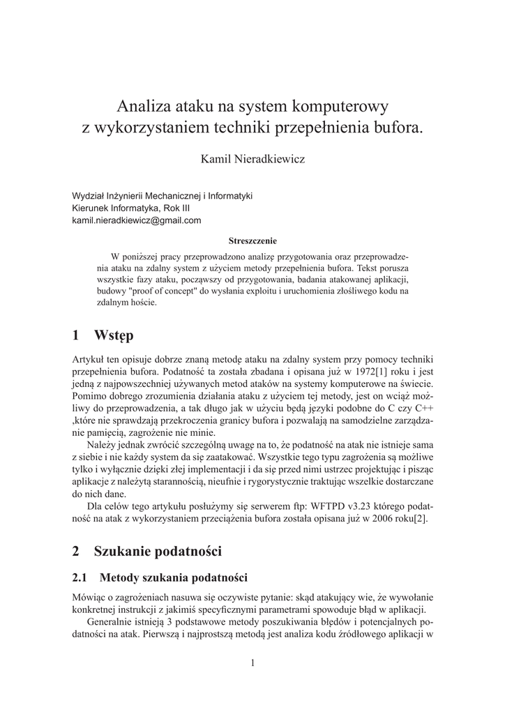 K. Nieradkiewicz - Analiza ataku na system komputerowy z