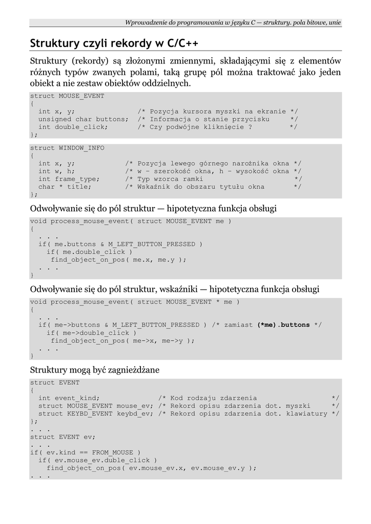 Wprowadzenie do programowania w języku C — struktury. pola bitowe, unie