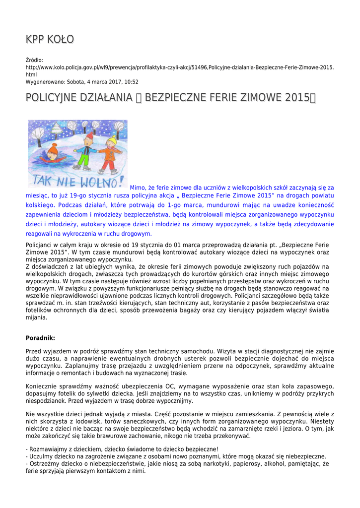 kpp koło policyjne działania bezpieczne ferie zimowe 2015