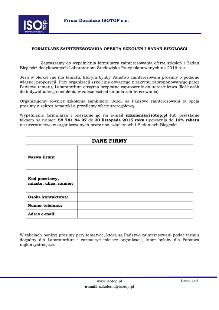 DANE FIRMY - Firma Doradcza ISOTOP sc