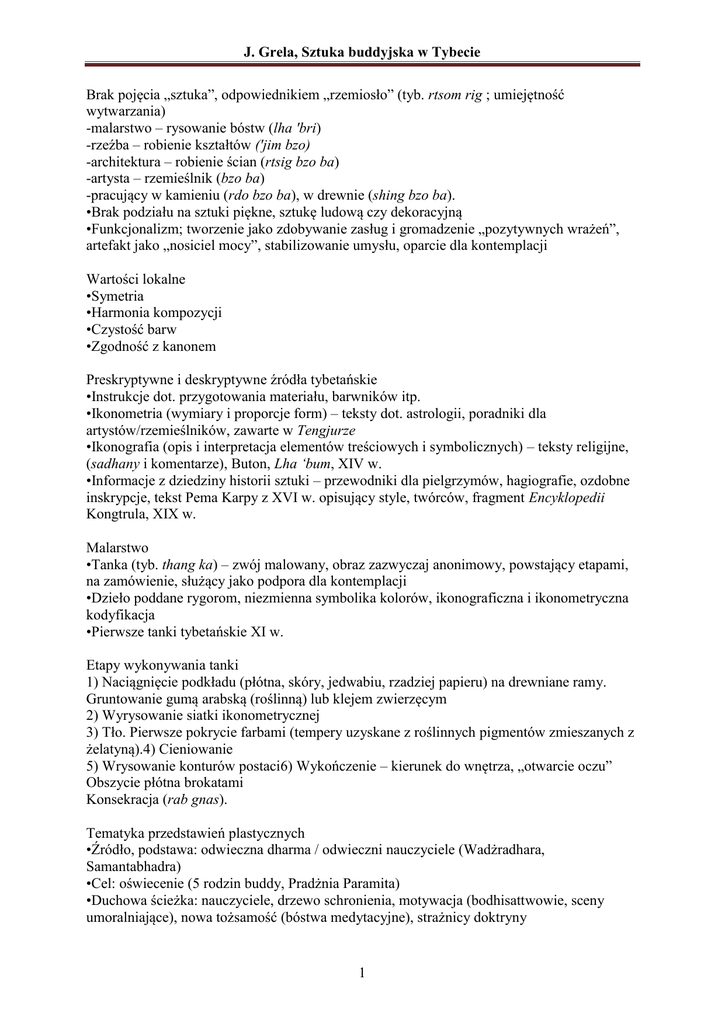 J. Grela, Sztuka buddyjska w Tybecie