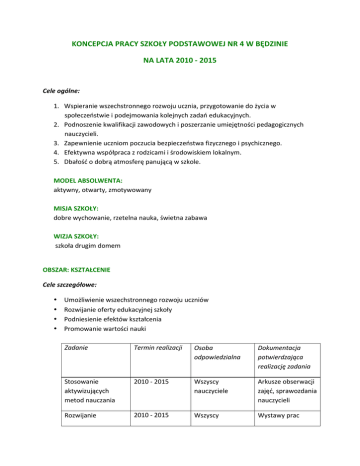 Koncepcja Pracy Szkoły Podstawowej nr 4 W Będzinie