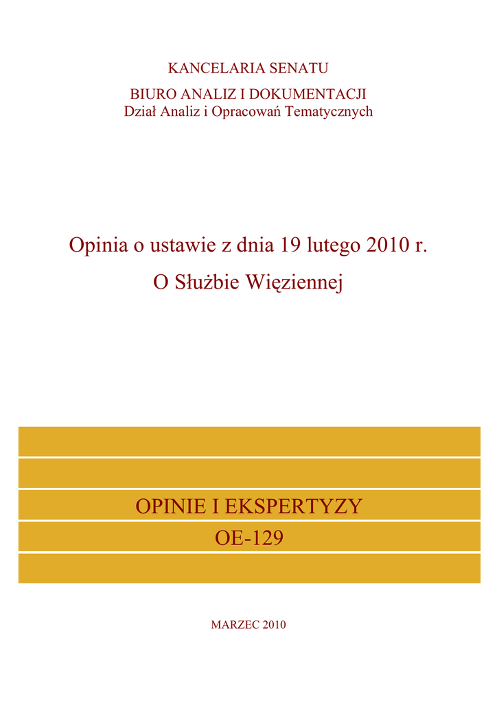 KANCELARIA SENATU BIURO ANALIZ I DOKUMENTACJI Dział Analiz i Opracowań Tematycznych Opinia o ustawie z dnia 19 lutego 2010 r. O Służbie Więziennej OPINIE I EKSPERTYZY OE-129 MARZEC 2010 Materiał przygotowany przez Dział Analiz i Opracowań Tematycznych Biura Analiz i Dokumentacji. Biuro zamawia opinie, analizy i ekspertyzy sporządzone przez specjalistów reprezentujących różne punkty widzenia. Wyrażone w materiale opinie odzwierciedlają jedynie poglądy autorów. Korzystanie z opinii i ekspertyz zawartych w tym zbiorze bez zezwolenia Kancelarii Senatu dopuszczalne wyłącznie w ramach dozwolonego użytku w rozumieniu ustawy z dnia 4 lutego 1994 r. o prawie autorskim i prawach pokrewnych (Dz. U. z 2006 r. Nr 90, poz. 631 ze zm.) i z zachowaniem wymogów tam przewidzianych. W pozostałym zakresie korzystanie z opinii i ekspertyz wymaga każdorazowego zezwolenia Kancelarii Senatu. ©Copyright by Kancelaria Senatu, Warszawa 2010 Redakcja techniczna: Piotr Marczak Biuro Analiz i Dokumentacji Kancelarii Senatu Dyrektor – Agata Karwowska-Sokołowska – tel. 022 694 94 32, fax 022 694 94 28, e-mail: [email protected] Wicedyrektor – Ewa Nawrocka – tel.022 694 98 53, e-mail: [email protected] Dział Analiz i Opracowań Tematycznych tel. 022 694 98 04, fax 022 694 99 06 prof. dr hab. Jerzy Kwaśniewski Uniwersytet Warszawski Instytut Profilaktyki Społecznej i Resocjalizacji Opinia o ustawie z dnia 19 lutego 2010 r. o Służbie Więziennej (druk senacki nr 795) 1. Niewątpliwie nowa ustawa naprawia wiele wad i braków ustawy o Służbie Więziennej (SW) z 1996r. (uwzględnionych już wcześniej w licznych nowelizacjach i orzecznictwie dotyczącym tej ustawy, w ostatnim dziesięcioleciu). Wprowadza także sporo nowych, niezbędnych uregulowań dotyczących przyjętego w ustawie z 1996 r. modelu SW oraz zasad jej funkcjonowania. 2. Ów przyjęty w ustawie model SW to, niestety, model paramilitarnej SW. Nowa ustawa umacnia paramilitarny status SW, militarną pragmatykę Służby, formułuje uprawnienia SW do działań na zewnątrz w sposób czyniący z niej żandarmerię penitencjarną. Odbiera SW samorząd, na dalszy plan odsunięte są funkcje resocjalizacyjne SW, która przede wszystkim ma działać na rzecz bezpieczeństwa publicznego. W ten sposób, co podkreślają przedstawiciele nauk penitencjarnych1, prawna regulacja SW zmierza w kierunku przeciwnym niż to wyznaczają unormowania zawarte w dokumentach Rady Europy i ONZ (Europejskie Reguły Więzienne (ERW) i Reguły Minimum ONZ (RM), czy też zalecenia i dyrektywy regulujące różne aspekty funkcjonowania personelu więziennego zawarte m. in. w propozycjach Europeen Committee on Crime Problems). A także w kierunku przeciwnym niż oparte na Regułach postulaty i nadzieje licznych przedstawicieli nauk penitencjarnych i przedstawicieli SW. „Reguły — jako zaledwie rekomendacja — nie mają mocy przepisów 1 P. Szczepaniak: O ustawowych regulacjach SW we współczesnej Polsce. w: „PRACE IPSiR UW” Tom XV, Warszawa, Wyd. IPSiR (w druku). 3 Biuro Analiz i Dokumentacji, Dział Analiz i Opracowań Tematycznych prawnych. Państwa, które podpisały rezolucję, podejmują się jednak przestrzegać zawartych w niej norm i co pięć lat przedstawiać sprawozdanie ze stanu zgodności swego systemu penitencjarnego z treścią norm zawartych w RM” – pisała w rok po uchwaleniu poprzedniej ustawy o SW prof. dr hab. Monika Płatek2. Dla ilustracji, przytoczmy porównanie standardów ERW z unormowaniami ustawy o SW3. Europejskie Reguły Więzienne. Reg. 53: „personel powołuje się z zasady na pełne etaty jako zawodowy personel więzienny, mający status państwowej służby cywilnej z trwałością zatrudnienia zależną od właściwego postępowania, skuteczności, dobrego stanu zdrowia somatycznego i psychicznego oraz odpowiedniego poziomu wykształcenia...” Art. 1 ust. 2 ustawy o SW (zarówno obowiązującej od 1996 r. jak i obecnie uchwalonej przez Sejm): „Służba Więzienna jest umundurowaną i uzbrojoną formacją apolityczną podlegającą ministrowi sprawiedliwości, posiadającą własną strukturę organizacyjną”. „W jednostkach organizacyjnych pełnią służbę funkcjonariusze oraz mogą być zatrudnieni pracownicy” (obecna proporcja to około 22 tys. funkcjonariuszy do 2 tys. pracowników). 3. Przyjęcie antydemokratycznego paramilitarnego i modelu antywychowawczego SW pociąga systemu za ściśle sobą przyjęcie hierarchicznego podporządkowania, jako stylu kierowania właściwego dla instytucji opartej na wzorach wojskowych. Dodajmy: właściwego dla tzw. instytucji totalnych. Jest to silnie krytykowane w dokumentach określających międzynarodowe standardy penitencjarne, a także przez przedstawicieli nauk penitencjarnych. Np. dr hab. Michał Porowski wskazuje na paradoks polegający na tym, że system paramilitarny SW „utrzymuje się mimo powszechnej akceptacji resocjalizacyjnych funkcji kary” i postuluje odstąpienie „od paramilitarnego modelu organizacji personelu penitencjarnego i od opartej na tych zasadach organizacji instytucji resocjalizacyjnej”.4 4. Przyjęta w ustawie hierarchizacja podległości skutkuje regulowaniem stosunków 2 M. Płatek w pracy pt.: Europejskie reguły więzienne a polskie prawo i praktyka penitencjarna w: Studia Iuridica XXXIV/1997. 3 P. Szczepaniak: op. cit. 4 M. Porowski, Uwagi do projektu ustawy o Służbie Więziennej, Ekspertyza nr 51, Biuro Studiów i Ekspertyz Sejmu RP, lipiec 1995 r. s. 2. 4 Opinia o ustawie z dnia 19 lutego 2010 r. o Służbie Więziennej wewnątrz SW pragmatyką służbową na wzór policji i wojska. Ponadto, pracownicy i funkcjonariusze są werbowani na zasadach obowiązujących w resorcie spraw wewnętrznych, gdyż o zdolności do służby decydują komisje MSWiA według standardów obowiązujących w tym resorcie. Po części jest to wynikiem tego, że więziennictwo polskie, mimo bogatych tradycji i licznych prób określ