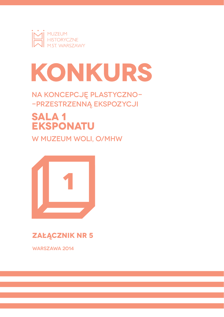 NA KONCEPCJĘ plastyczno-przestrzennĄ ekspozycji SALA 1 EKSPONATU W Muzeum WOLI, o/MHW 1 ZAŁĄCZNIK NR 5 Warszawa 2014 Załącznik nr 5 OGÓLNE NORMY PRZECHOWYWANIA I EKSPOZYCJI OBIEKTÓW ZABYTKOWYCH WYMAGANE PRZEZ MUZEUM HISTORYCZNE M.ST. WARSZAWY Temperatura (T) Dotyczy wszystkich rodzajów obiektów z wyłączeniem materiałów fotograficznych T = + 19oC do 21oC Zalecana temperatura w magazynie fotografii T = + 12oC do 18oC Dopuszczalne dobowe wahania +/- 1oC Wilgotność względna (RH) a) Obrazy na płótnie RH = 40-55% b) Obrazy na deskach, rzeźba polichromowana RH = 40-60 % c) Papier RH = 40-55 % d) Tkanina, ubiory RH = 50-60 % e) Szkło RH = 40-50 % (szkło „chore” wymaga indywidualnych norm RH = < 37 %) f) Metal, broń, numizmaty, fotografia RH = 15-40 % g) Meble, drewniane instrumenty muzyczne RH = 45-60 % h) Kamień, gips RH = 45-60 % Dopuszczalne wahania dobowe +/- 5 % 2 Oświetlenie Podane normy natężenia światła i czasu ekspozycji dotyczą oświetlenia obiektów źródłem światła z filtrem UV (max UV-0,002 W/cm2 lub 75 W/lm) oraz IR 1. Obiekty mało wrażliwe – metal, kamień, gips, szkło natężenie światła: 300 - 500 lux czas ekspozycji: bez ograniczeń 2. Obiekty średnio wrażliwe – obrazy olejne, tempera, laka, kości natężenie światła: 150 – 300 lux czas ekspozycji: 3000h/rok 3. Obiekty bardzo wrażliwe – papier, fotografia, tkaniny, skóra natężenie światła: 50 lux Obiekty nie mogą być narażone na bezpośrednie działanie światła słonecznego. W pomieszczeniach magazynowych i ekspozycyjnych powinna być zapewniona możliwość niezależnej regulacji wszystkich parametrów w zależności od rodzaju zgromadzonych obiektów. 3