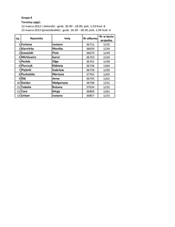 Grupa nr 4 - lista student闚 w na poradnę prawa pracy