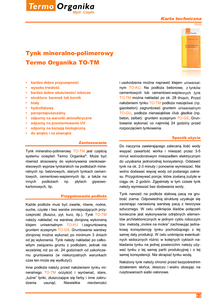Tynk mineralno-polimerowy Termo Organika TO-TM