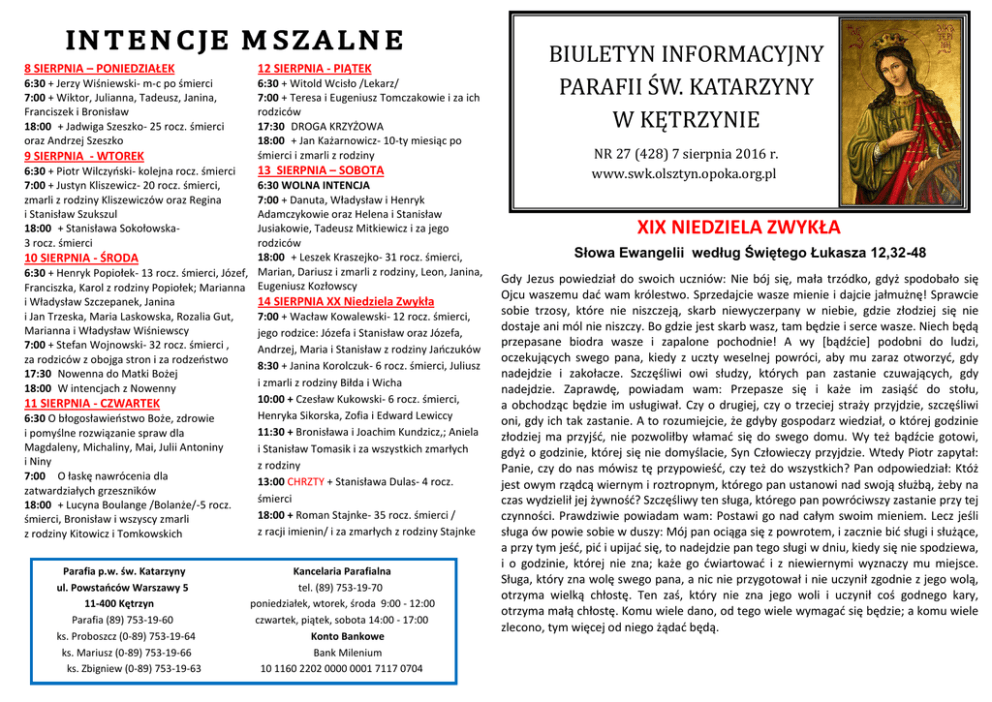 7 sierpnia 2016 r. - Rzymskokatolicka Parafia św. Katarzyny w
