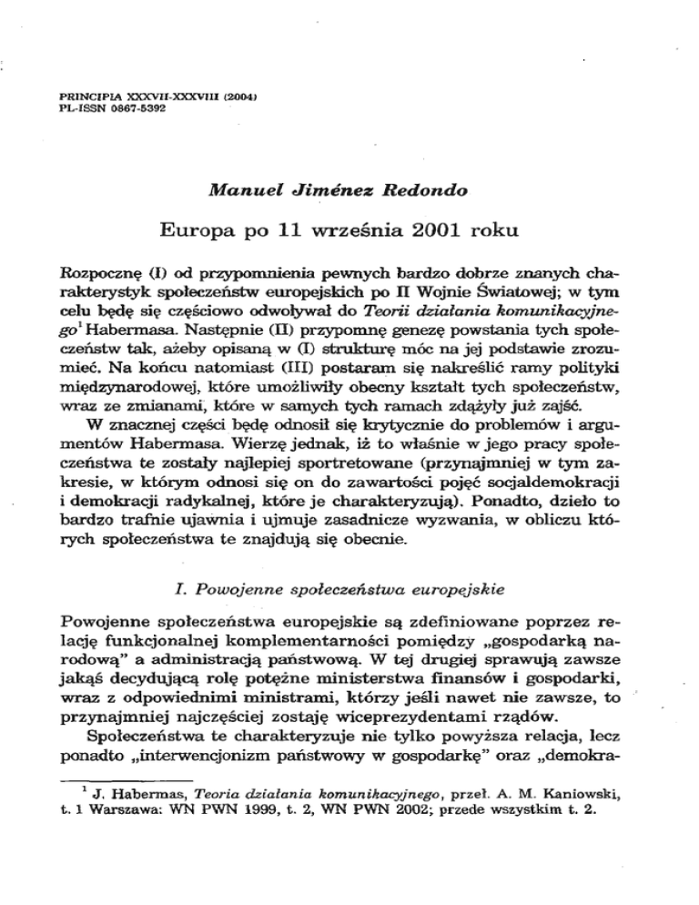 celu ~~ si~ cz~8ciowo odwolywal do Teorií dzíalanía komunikacyjnego1Habermasa. Nas~pnie (ll) przypomn~ genez~ powstania tych spoleczelÍstw tak, aieby opisan~ w U) struktur~ móc na jej podstawie zrozumieé. Na koncu natomiast (Ili) postaram si~ nakreslié ramy polityki