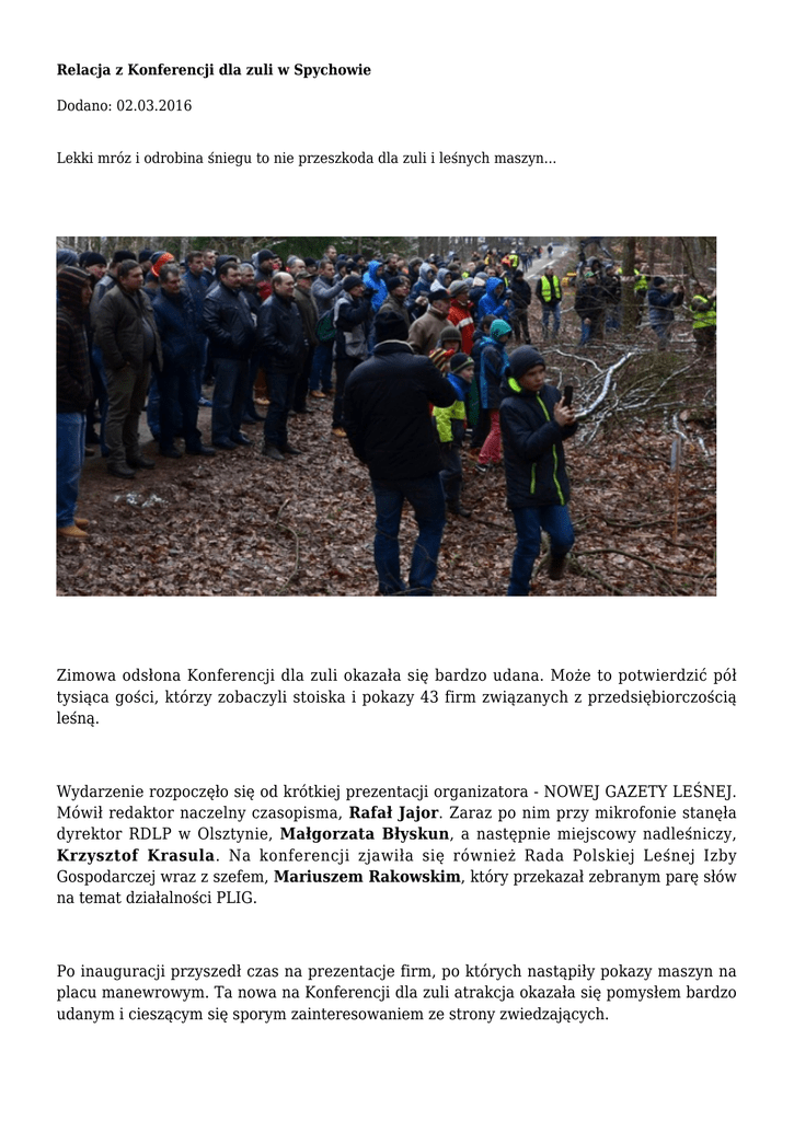 Firmy Leśne - Relacja z Konferencji dla zuli w Spychowie