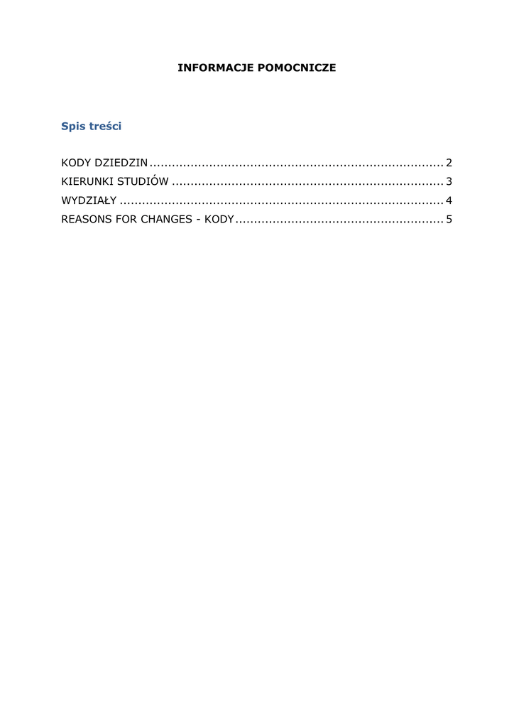INFORMACJE POMOCNICZE Spis treści KODY DZIEDZIN