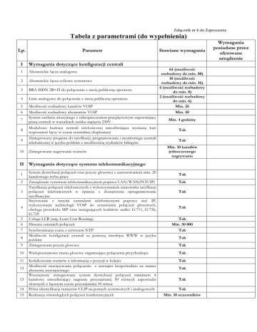 załącznik nr 6 - tabela z parametrami do wypełnienia