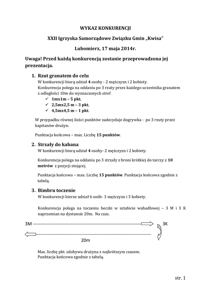 str. 1 WYKAZ KONKURENCJI XXII Igrzyska Samorządowe Związku