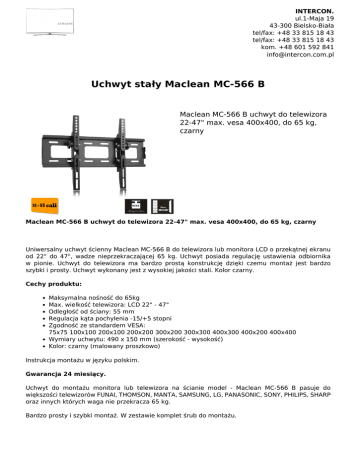 Uniwersalny uchwyt ścienny Maclean MC-566 B do telewizora lub monitora LCD o przekątnej ekranu
