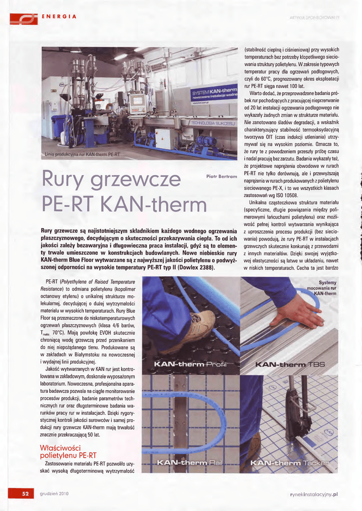 1d.ńufńco;o1su;1euńr 6 1 . 9 7g e r z p n r b g9o1euńz4ńnn błnoultllle1o0n1p Ąosfurn9e1s -ńzno1l;onnzod aIueMosolssz IU-]dn|eua}BuJ ld-]d nuo|Ąo||od |]9o^^|f9ołM p; ggbcblezcerlez.rd aruzceuz ggoleMJlbleu uraql-py;1azcmazl0furullqnp -old laules I M9cmolns rc9o1el r;ol1uo>1 lauzcń}s .qcelce;e1sul -fuo6fu l1bz6 łn lnl ńceldnło1uu -PMP|uepeq annoutula1oDn1p zetolnl qcńuzctu -qcol MgJlouleled eruepeq'llclnpotd nłgsecotd aIuPMoJol|uotll e10blc eue;ełnzod ezcMepeq eJnl -erede eu;euolsalotd'eusezconiroN'unuolpJoqpl ulńuozesodń^^ aIPuołsop,uńnnope;1ez łneuenno1 Jn,t -ol1uo1 qcńueaeniril^n lnl nn 1sal 1yy 99ołep .tautńqnpold tlul; leulepńnł l lausezconnou eu n1o1stuń1elg M tłcepełłez M 'nuoll bs euennolnpord oOeuepbzodalu [eluop pead bzcniraaD ueruelluezrd bponn bcbruolqc g66 b1o;nnod a|uzcalnłs blen '(3"0l ''.'lM9Jeq9/' ese;1)qcńluouzńzczse;d uBłnezl0o qcńnłoln1eledulelołsIu opauozceuzazld bsloo;1 qcr1osńrrir en1g fung.qceln1eladue1 łnnlPuoleu| ,laue;n1e; lc9o1euńz$nn laznpo tacblnpńcap -ou azlnD|nlls leu;e1lun o (nua;Ąa ńnnoue1co pue|u'lpo laul;odo1) nue;ńpl;od ol (acupjs/sag aląercdwa1 paslealo aua1Ą1aĄo4|1g-17 .qceln1eladua1 .(88Ezxelmoo) dĄ qc|łs|u M ozpJpq $al el eqcoJ en;osńrneu lcgourodpo 19.36ńrn1eredua1 lI lauozs ,n|uepełłn .7ńmpod M oMlPl bs lc9ouzcń1se;a lełit o nua;Ąel;od lezs7ńrnleu z toMeu bs euBzreruuńM loolJ antg uJaql.NV)| lc9ołPl .M9|e|Joleu| .qc^ue;^^opnq -ołtblńnn qcńuut t1blzg lelonns z ńrnl e;1se;qelu qcelc4n4suoł errltoN M euozczselun e;ełu1Ą qcńzcłnea0 .ueuteloo1bs zńp6,llcetepu!BcBldeuzcolrnobnpl pulfuerurBzeq z blrun1uo>1 a|uzcalnłs lLueponnazld ^1e.ezlc9o1e! ,oDerurouzńzczse1d qcelce;e1sut M lu-ld funraz 'bfnponitod (erueiu qc! po ol .e1delceluennłze4ezrd lc9ouzce1n1s o ruńcblnpńcep -orcors zeql rlclnpordnsacordBluazczsordn z e;uernezrDo o0eupomo6epłełuoD|lupplłstuńzslelu1o1slleu bs ozcrnez,E^Jnu t;ol1uo1 lau;ed99ołir eluezen4ńnn ecble1luńnł .||zowzelo (nue;ń1et;od IuJpqcncgeł lulńnnoleul .l;od el6n1p,auzct/cads) ńzpbltu eluBzblnnod eJnlłn]lsenno1zca1sbzc eu|eł|ur,| n|e|'loleul .8090 ] os| 0łtuemoso1sez qcese;4 qcl4sńzsM oM ol l ,y-36oOauenłolcals qcelnlnneluozbldeu z qcńuenno1npold nuąĄet;od uroJue8 l a;e,blnunnpop o1[1elu 1g-16 blBzszńnnezd qce]nJ eluazbldeu M amopoMqo ełłop1alold az .nlnaPz ,za1 eluPpP8 zaq b[nceld t ;epeu Ąeze1ńłł z e}funloz nsezcbqgldĄzsezduleluazpołnod ,ol ezcpuzg.ott.uolzod Lut1osńłit eu bts 1ennńu -ńzlp (eluelue;1n llc1npul sezc)l|0 ennńzlonn1 ńcblnzfu a11eleqc bu[ńcepńs1ooLulol 99ou||qe$ M9p9|9 oueMo}oupz e ,llcepelDep o|N ł|u7PłsM 'nłeua}eu qcńupez oanłłnJFM ueIu.lz Ąeze1ńnn eruennozrDo rlce;e1sur aruoOennoOolpod lel 0Z po z qcńcbzpoqcod lacblnceld lrupq alueivuoz.ldalu -9ld az'9epop euozpenońaud oueM etuepeq .1e| eObts 00l łoMPu 1g-36lnl ,3"ggop l;ńzc sel1ońuennozoubold llce1eo;ds1e ,qcńnnoOopod genłaz0o ąp ńceldln1eladue1 .nua;ńpl;od qcńłtodĄ alsaqez fuą1ru1s eluenit 6 -olcals ńqaz.l1od zaqqceln1eladua1 oDennl;1odo11 qcqosńłn l bu;delc ńzd (bnnolualu9lc 99ou||qe}s) urroql-NV) Id-:ld ez)^^ezJ6Asnd Jło!d vtcutNt tl';i i i; .t: ta .' t,1 ENERGIA lubw zabudowie za|ewane sqjastrychem) suche| (zpod|ogq |ubna|egarach). ,'p|ywa!qcq,, jest Nabazie ruro średnicy 12 i 14mmmoż|iwy komp|etnego teżmontaż ogzewania ściennego' Ze wzg|ędu nawysokqe|as$czność i trwa|ość nada|ą się do rurygnewczePE-BTszczegó|nie plaszczyznowych w ogzewaniach stosowania powierzchni, takichlakboiskapifkarotwartych Iodowiska System skie, czyciągikomunikacyjne' Rurygrzewcze KAN-themPE-RT jest plaszczyznowego KAN-therm ogrzewania pęt|e przez pzeznaczenie co ze zawiera wszystkie rury kompletny, oznacza, Ze wzg|ędu na specja|ne monteróWuk|adaiących ceniona niezbędne domontażu sprawnego i ekoWarunkach montażu, np. MN-therm BIueFIoor cenowo e|emenĘ grzewcze sq konkurencyjne W różnych RuryPE-RT w porównaniu z jużistnie|ącymi na rynkutzw. nomicznego ogzewania,tl. izolacie,rozdzielacze, nieogftewanych. w pomieszczeniach pzy|qczeniową. w instala- szafki, automatykę i armaturę W procesie ruramiuniwersalnymi, stosowanymi się takżeuzyskaną charakteryzu|q g|adkością aIe także inwestozy i wykonawcy typu. Projektanci, wysokq ścianek cjachróżnego bardzo wyt|aczania pzyjaznego produkowane w dukozystać mogq również z nazędzia (większq na BuryMN-therm PE-RT są niżrurPE.X|ubPB),wplywa'|qcą 'l pneplywu, i 25 mm do szybkiej kalkulacji i doboru wszystkich elemena takżemniejszą łm zakresie średnic: 2, 14,16' 18,20 opory zmniejszone pod|ogowego podatnośó tów ogrzewania KAN-therm, czy|i osadów. i sprawdzajq sięwe wszystkich zastosowaniach nazaIeganie programu plaszczyznowego. MN onIine OuickF|oor, dostępnego na ogzewania internetowej firmyMN. stronie Rurvorzewcze KAŃ-ihermPE-RT Systemymocowonio liniarur grzewczych KAN- rurKAN-Iherm Nowaniebieska -thermPE-RTto wyraztendencji rynkowej, Dostosowując się do wymagańwspólczetej snelarchitektury i techniki system po|egajqce| na corazwiększymudzia|e budowlanej, mocozawiera ca|qpa|etę rozwiqzań odmianytworzywaw rurowychinstalacjach MN-therm SYSTEM KAlv-therm (systegnewczych W 2007r. waniarur i konstrukcli izolacji i ogrzewania' d|awodyużytkowej udzia|ten wynosi||uż myTacker, Profi|, RaiIorazTBS), Europie umoż|iwiajqcychKANSp.z o.o. w zachodniej podlóg 16-001Bialystok-Kleosin, ul.Zdrojowa 51 tworzywpolimerowychdowoIny sposóbzabudowy wszystkich ogrzewanych 30 procent takich i ścian. Dziękitej różnorodności ogrzewanie tel 857499200,faks857499201 w techniceinstalacyinej, stosowanych (rury e-mail: pod|ogowe jakPE-X,PĘPB i innych. [email protected], www.kan.com.pl można wykonać mokrq metodq Ó E o I rynekinstolocyjnY.Pl g r u d z i e ń2 0 1 0