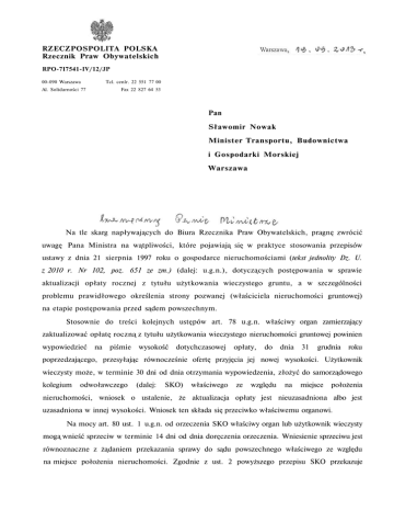 Na tle skarg napływających do Biura Rzecznika Praw Obywatelskich, pragnę zwrócić