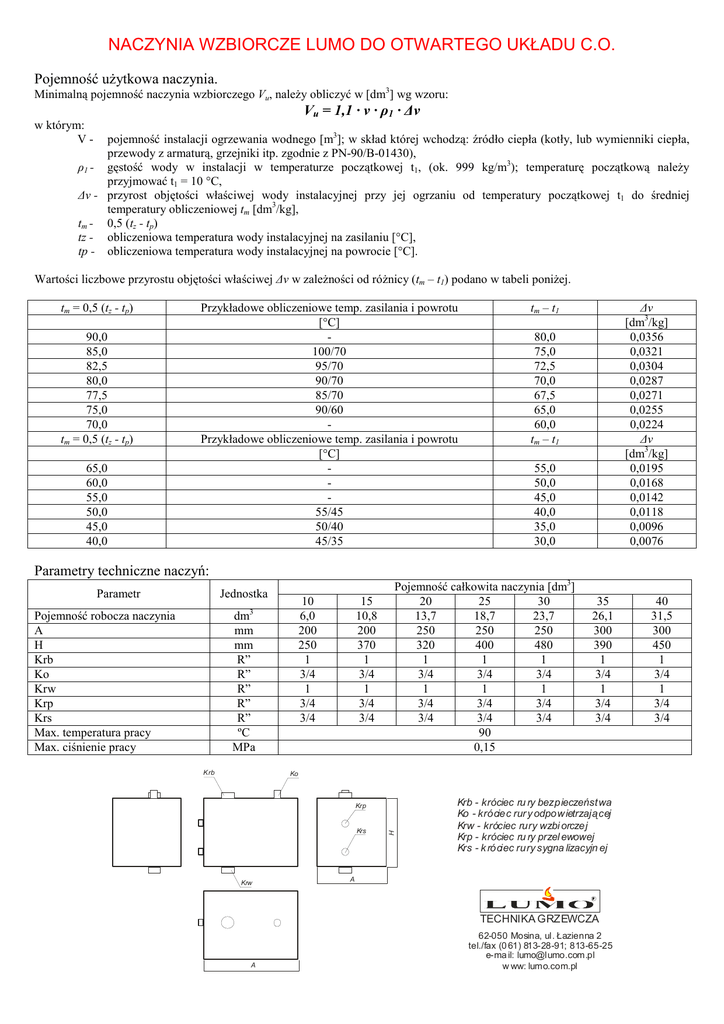 Naczynia wzbiorcze LUMO do otwartego układu C.O.
