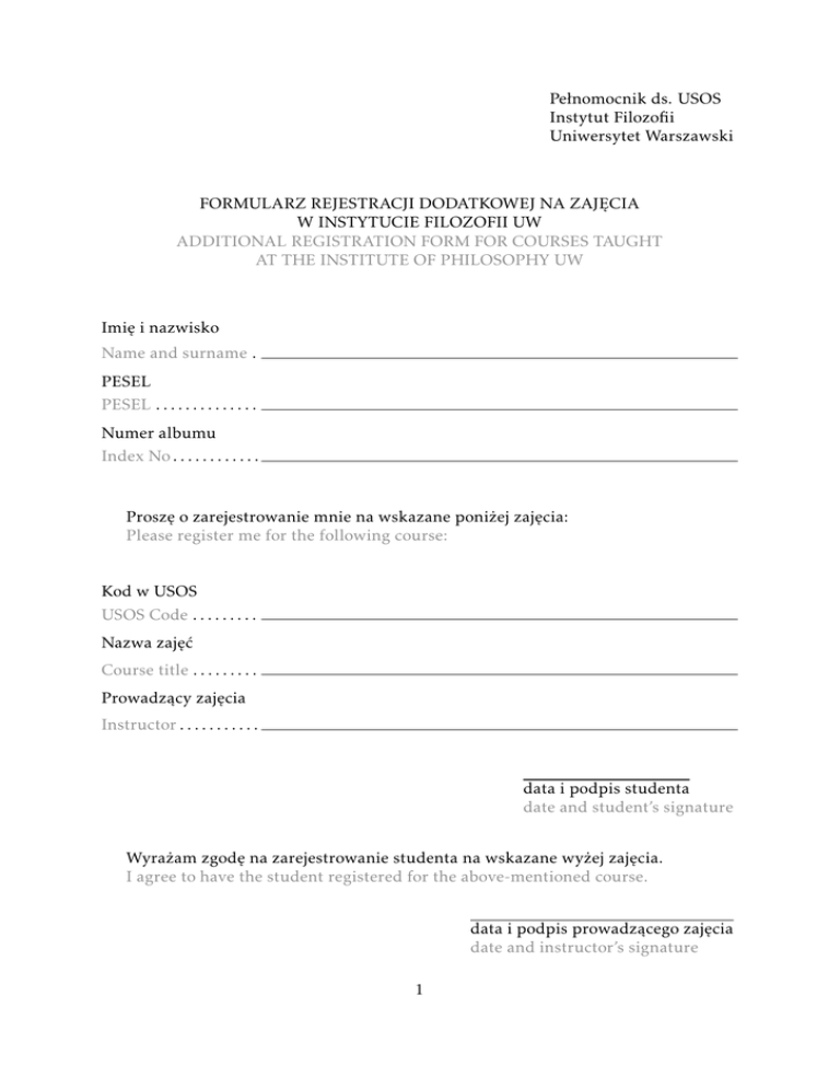 Formularz rejestracji dodatkowej - Instytut Filozofii UW