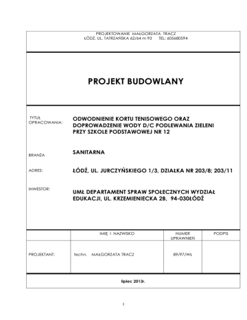 Opis_odwodnienie kortu - Szkoła Podstawowa nr 12 w Łodzi