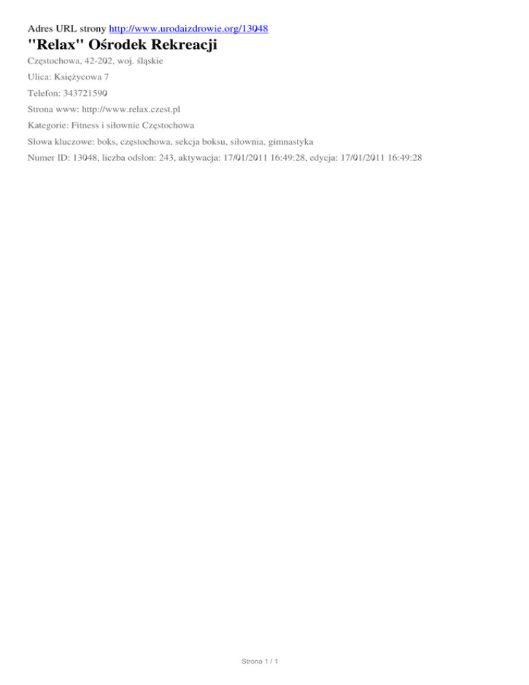 "Relax" Osrodek Rekreacji, Czestochowa, Ksiezycowa 7