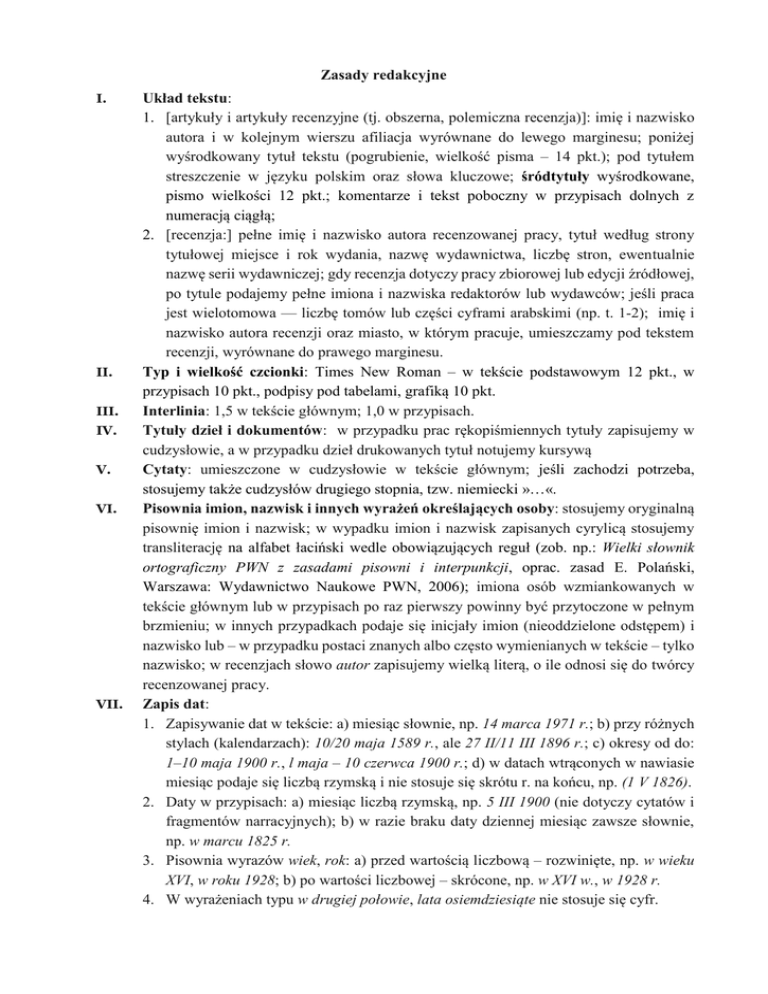 Zasady redakcyjne Układ tekstu: 1. [artykuły i artykuły recenzyjne (tj