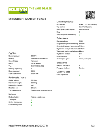 http://www.kleynvans.pl/203071/ 1/3 MITSUBISHI CANTER FB 634