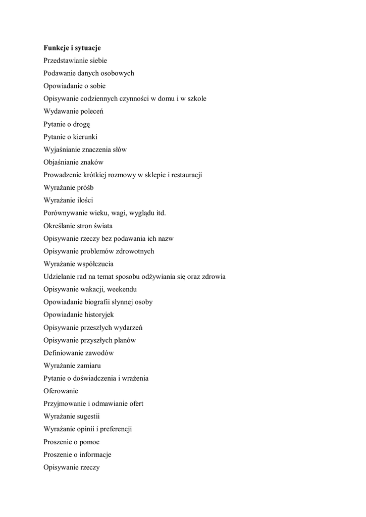 Zakres wymagań leksykalno-gramatycznych do egzaminu
