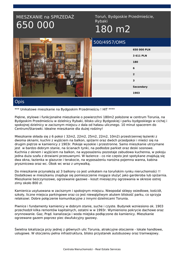 650 000 180 m2 - Centrala Nieruchomości