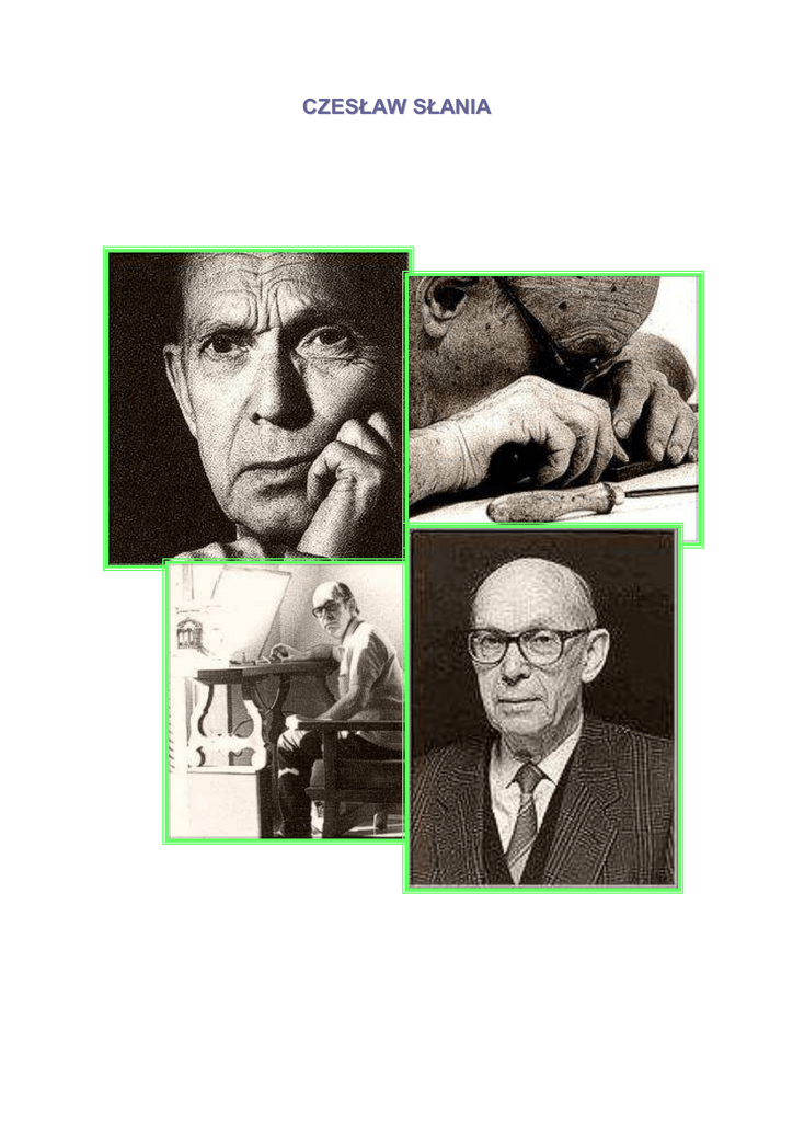 CZESŁAW SŁANIA 22.10.1921 Czeladź – Data i miejsce urodzin Czesława Słani. 1927 – Przeprowadzka wraz z rodziną do wsi Osmolice koło Lubl i na 1945 – Wstąpienie do Krakowskiej Akademii Sztuk Pięknych. 1947-1949 – Dokonanie wyboru specjalizacji – dwa ostatnie lata studiów poświęca wyłącznie technice miedziorytniczej i akwarystyce. Efektem tych zainteresowań jest praca dyplomowa pt.: „Bitwa pod Grunwaldem” wg obrazu J. Matejki wykonana techniką stalorytniczą w formie znaczka pocztowego – projekt nie został zrealizowany. 1950 – Współpraca z Pocztą Polską w Łodzi. Praca w Łódzkiej Wytwórni Papierów Wartościowych pod okiem znanego grawera M.R. Polaka, gdzie zapoznaje się bliżej z projektowaniem i produkcją znaczków pocztowych. 1951 – Wygrawerowanie pierwszych znaczków „80-lecie Komuny Paryskiej” oraz serii: rocznica „Manifestu Lipcowego”. 1951-1956 – Wykonanie dla Poczty Polskiej 22 znaczków i 14 projektów m.in.. Bobra w serii „Zwierzęta pod ochroną”, „V Międzynarodowy Konkurs im. F. Chopina”, „Pomnik Kopernika Warszawie”, „Pomnik Bohaterów Getta w Warszawie”, rzut oszczepem w serii „Igrzyska Olimpijskie w Melbourne 1956”. 1956 – Opuszczenie Polski i osiedlenie się na stałe w Szwecji. 1960 – Rozpoczęcie pracy jako grawer w Poczcie Szwedzkiej. 1962-1969 – Wygrawerowanie pierwszych znaczków dla Danii, Grenlandii, San Marino i Islandii. 1972 – Uhonorowanie tytułem „Nadwornego Grawera” przez króla Szwecji Gustawa Adolfa VI. Rozpoczęcie współpracy z Monaco serią sławnych władców, jednoczesne nawiązanie przyjaznych stosunków z księciem Reinierem i całą książęcą rodziną. 1974 – Odznaczenie duńskim „Orderem Kapituły rycerskiej” przez królową Danii Małgorzatę II. San Marino i Wyspy Owcze wydają znaczki wygrawerowane przez Czesława Słanię. 1978 – Znaczek z Wysp Owczych, przedstawiający zabytkowy budynek biblioteki na wsi, zostaje uznany za najpiękniejszy znaczek świata. 1979 – Najpiękniejszym znaczkiem tego roku zostaje uznany szwedzki znaczek wygrawerowany przez Cz. Słanię pt. „Balet”, przedstawiający tańczącą parę. 1982 – Wygrawerowanie pierwszych znaczków dla Francji i Wielkiej Brytanii. 1983 – Najpiękniejszymi znaczkami na świecie zostają uznane znaczki z Monako „Le Cafe de Paris”, „Place du Casino”. 1984 – Odznaczenie złotym medalem „Ósmej Wielkości z Niebieską Wstęgą” przez króla Szwecji Karola Gustawa XVI. Nagroda Roberta Stolza za najpiękniejszy znaczek na świecie w dziedzinie muzyki. Wzorem znaczka był obraz A. Zorna z wizerunkiem ludowego skrzypka. Nadanie przez księcia Monako Reiniera III „Orderu św. Karola” za wizerunki książęcej rodziny i przedstawicieli rządu M onac o. 1991 – Otrzymanie pierwszego szwedzkiego, filatelistycznego „Oskara” za znaczek 1990 roku „Nad morzem”. Odznaczenie pamiątkowym medalem za osiągnięcia i propagowanie kultury Szwecji w świecie przez Szwedzki Instytut Imigracyjny w Boras. Ukazanie się rytowanego bloku „Koronacja króla Gustawa III”. Nadanie przez Prezydenta RP Srebrnego Krzyża Zasługi. Zorganizowanie jubileuszowych wystaw przez Muzeum Poczty i Komunikacji we Wrocławiu i Muzeum Poczty w Sztokholmie z okazji 70-lecia urodzin i 40-lecia pracy w zawodzie grawera. 1992 – Wygrawerowanie portretu swojej matki Józefy Słani. Wydanie przez Pocztę Polską bloku „Legenda o Orle białym” na światową Wystawę Filatelistyczną. 1996 – Zorganizowanie przez Muzeum Poczty Polskiej i Telekomunikacji we Wrocławiu wystawy grafiki artysty ze zbiorów prywatnych Jerzego Krysiaka. Odznaczenie pamiątkowym medalem za zasługi dla rozwoju Muzeum Poczty i Telekomunikacji we Wrocławiu. Wygrawerowanie dla Muzeum Poczty jubileuszowego exlibrisu z motywem polskiego znaczka z 1990r. 1998 – Odznaczenie przez Prezydenta RP Krzyżem Komandorskim Orderu Zasługi Rzeczpospolitej Polskiej. 1999 – Ogłoszenie Czesława Słani Polakiem Stulecia w Szwecji. Nadanie przez Radę Miejską w Czeladzi tytułu Honorowego Obywatela Miasta Czeladzi. 2000 – Stworzenie serii znaczków z okazji 80-lecia urodzin Ojca Świętego Jana Pawła II. Wyróżnienie przez Papieża Orderem Świętego Grzegorza. Powstaje tysięczny znaczek. 2001 – Zgłoszenie Czesława Słani przez ambasadora RP w Szwecji do Nagrody im. Andrzeja Drawicza. Przyjęcie przez Koło Filatelistyczne przy Szkole Podstawowej Nr1 w Czeladzi im. Czesława Słani. 2002 – Nadanie przez Pocztę Brytyjską złotego medalu Rowland Hill Outstanding Axhievement za zasługi na polu popularyzacji znaczków pocztowych oraz Philips gold Award za największy wkład w projektowanie i wykonywanie znaczków pocztowych. Ogłoszenie Czesława Słani Polakiem Stulecia. 17.03.2005 Kraków – Data i miejsce śmierci Czesława Słani.