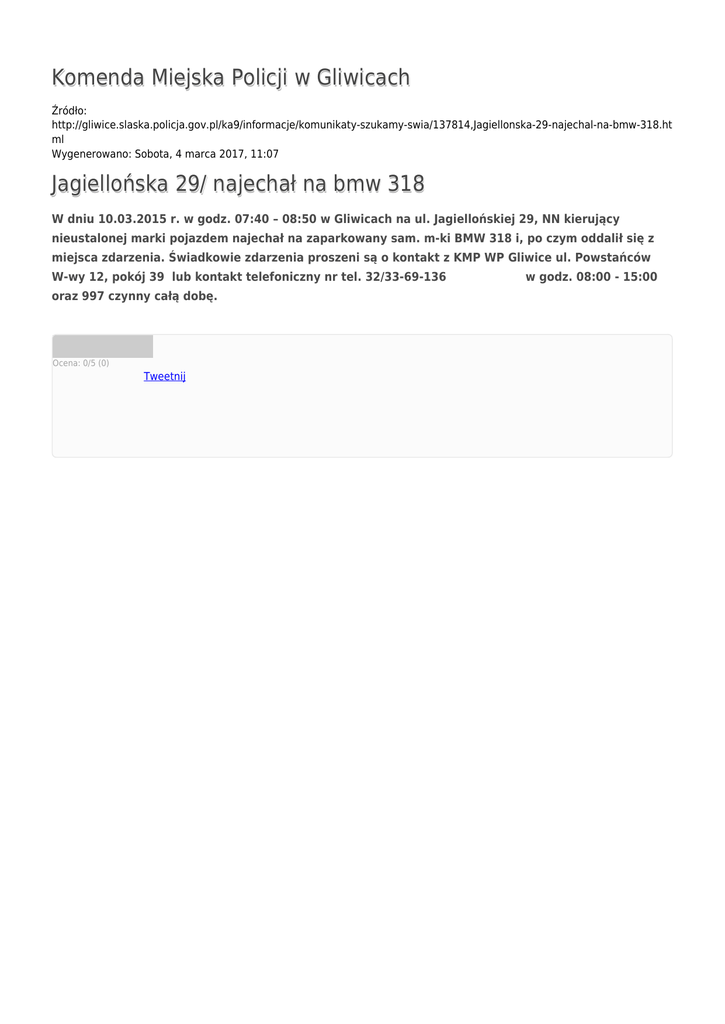 Generuj PDF - Komenda Miejska Policji w Gliwicach