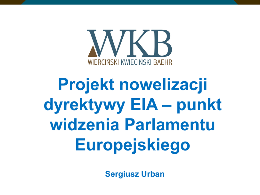 Projekt nowelizacji dyrektywy EIA – punkt widzenia Parlamentu Europejskiego Sergiusz Urban Stanowisko Parlamentu Europejskiego wyrażone w Projekcie Sprawozdania z dnia 11 kwietnia 2013 r. w sprawie wniosku dotyczącego dyrektywy Parlamentu Europejskiego i Rady zmieniającej dyrektywę 2011/92/UE w sprawie oceny skutków wywieranych przez niektóre przedsięwzięcia publiczne i prywatne na środowisko naturalne przygotowanym przez Sprawozdawcę Andrea Zanoni, Komisja Ochrony Środowiska Naturalnego, Zdrowia Publicznego Żywności, PE www.wkb.com.pl i Bezpieczeństwa Przedstawienie najważniejszych zmian do projektu przedstawionego przez KE, zaproponowanych przez PE I. Zmiany administracyjne w systemie OOŚ II. Zmiany służące poprawie jakości OOŚ III. Zmiany wzmacniające obowiązki związane z etapem następującym po OOŚ IV. Zmiany poszerzające dostęp do informacji i wzmacniające udział społeczeństwa V. Zmiany związane z poszukiwaniem i wydobyciem węglowodorów niekonkwencjonalnych www.wkb.com.pl I. Zmiany administracyjne w systemie OOŚ (1) (1) Komisja wesprze Państwa Członkowskie w organizacji skoordynowanych i wspólnych procedur ocen środowiskowych wymaganych dyrektywą EIA i innymi przepisami (“punkt kompleksowej obsługi OOŚ”) “W ramach skoordynowanej procedury właściwy organ koordynuje różne indywidualne oceny wymagane odpowiednimi przepisami unijnymi i sporządzane przez różne organy” (popr. 17) “Komisja współpracuje z państwami członkowskimi i dostarcza im niezbędnej pomocy przy określaniu i prowadzeniu skoordynowanych lub wspólnych procedur” (popr. 18). www.wkb.com.pl I. Zmiany administracyjne w systemie OOŚ (2) (2) Przedłużenie procedury OOŚ dopuszczalne tylko w wyjakowych przypadkach “właściwy organ może wyjątkowo przedłużyć ten termin o kolejne trzy miesiące” (popr. 42) (3) Znaczące niekorzystne skutki dla środowiska mogą przesłanka do odmowy zgody na realizację przedsięwzięcia być Jeżeli okaże się, że przedsięwzięcie będzie miało znaczące niekorzystne skutki dla środowiska, właściwy organ “rozważa, czy należy odmówić zgody na przedsięwzięcie” (popr. 37, popr. 44) www.wkb.com.pl II. Zmiany służące poprawie jakości OOŚ (1) 1. „Pełna” niezależność właściwych organów • • • Zapewnienie pełnej niezależności właściwych organów “zapewnienie pełnej niezależności w wykonywaniu zadań powierzonych” (popr. 16) Wykluczenie konfliktu interesów pomiędzy wykonawcą przedsięwzięcia poddanego ocenie oddziaływania na środowisko a właściwymi organami “właściwe organy nie powinny nie powinny pozostawać w jakimkolwiek stosunku zależności lub podporządkowania względem wykonawcy” (popr. 2, 16) Rozgraniczenie pomiędzy właściwym organem a wykonawcą przedsięwzięcia poddanego ocenie oddziaływania na środowisko “organ, który został wyznaczony jako organ właściwy (…) nie mógł odgrywać tej roli w stosunku do przedsięwzięć podlegających ocenie oddziaływania na środowisko, których sam jest wykonawcą” (popr. 2, 16) www.wkb.com.pl II. Zmiany służące poprawie jakości OOŚ (2) 2. „Całkowita” niezależność ekspertów “eksperci posiadają niezbędne kompetencje do wykonywania zadań (…) całkowicie niezależnie od wykonawcy i samych właściwych organów” (popr. 5) “eksperci (…) i komitety składające się z ekspertów krajowych powinny zapewnić odpowiednie gwarancje posiadania kwalifikacji i bezstronności (…) zapewniając naukowo obiektywną i niezależną ocenę, bez żadnej ingerencji lub wpływu ze strony właściwego organu wykonawcy lub organów krajowych” (popr. 32) www.wkb.com.pl II. Zmiany służące poprawie jakości OOŚ (3) 3. Kompetencje techniczne ekspertów “eksperci, (…) posiadają, dzięki swoim kwalifikacjom i doświadczeniu, niezbędne kompetencje techniczne” (popr. 5) “eksperci posiadający kwalifikacje techniczne i komitety składające się z ekspertów krajowych powinny zapewnić odpowiednie gwarancje posiadania kwalifikacji” (popr. 32) www.wkb.com.pl II. Zmiany służące poprawie jakości OOŚ (4) 4. PE nie chce jednak wprowadzenia obowiązkowego systemu akredytacji ekspertów Uzasadnienie: “Obowiązkowe wprowadzenie systemu akredytacji ekspertów posiadających kwalifikacje techniczne może sprawić państwom członkowskim, jak i podmiotom gospodarczym znaczne trudności związane z jego stosowaniem” (popr. 28, popr. 29, popr. 30, popr. 31) 5. Przedsięwzięcia należy opisywać i oceniać szczegółowo, w ich całokształcie, comparative assessment of alternatives “Ocena oddziaływania na środowisko polega na określeniu, szczegółowym opisaniu i ocenieniu przedsięwzięcia, rozpatrywanego w całości” (popr. 20, popr. 24, popr. 35, popr. 60) “procedury oceny porównawczej (…) aby umożliwić wybór bardziej zrównoważony i przyjazny dla środowiska.” (popr. 3) “przeprowadzenie analizy porównawczej różnych proponowanych rozwiązań” (popr. 26) www.wkb.com.pl II. Zmiany służące poprawie jakości OOŚ (5) 6. Usunięcie odniesienia do oceny oddziaływania na środowisko przeprowadzanej na różnych szczeblach (np. na etapie planistycznym) lub za pomocą różnych instrumentów (popr. 4, popr. 25) KE: “Aby uniknąć powielania oceny” vs uzasadnienie PE “Należy uniknąć sytuacji, w której to wykonawca wyklucza obowiązkowe włączenie do sprawozdania o oddziaływaniu na środowisko alternatyw dla proponowanego projektu na podstawie prostego założenia, że ocena alternatyw powinna być prowadzona na poziomie planowania(…)” www.wkb.com.pl II. Zmiany służące poprawie jakości OOŚ (6) 7. Ograniczenie okresu ważności danych zebranych podczas oceny oddziaływania na środowisko “Jeśli w ciągu pięciu lat od przeprowadzenia oceny oddziaływania na środowisko przedsięwzięcie nie jest realizowane, informacje zawarte w ocenie oddziaływa