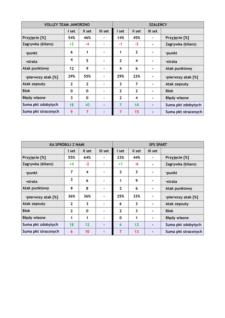 VOLLEY TEAM JAWORZNO SZALEŃCY I set II set III set I set II set III