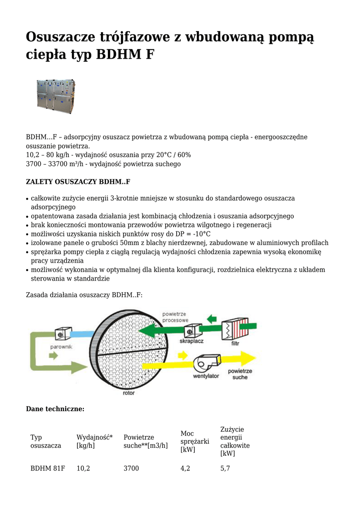 Osuszacze trójfazowe z wbudowaną pompą ciepła typ BDHM F