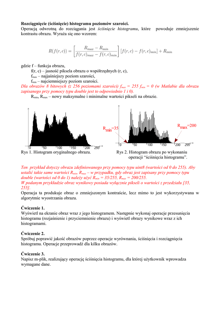 Rmin, Rmax – nowy maksymalne i minimalne wartości pikseli na obrazie.