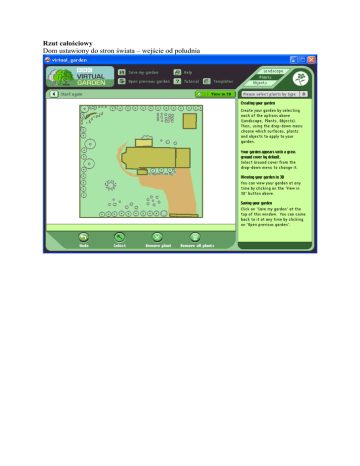 Rzut całościowy Dom ustawiony do stron świata – wejście od południa 1. Wjazd na działkę ( nie ma do wstawienia bramy – dziwny ten program ) To brązowe w paseczki, to dom i ganek 2. Ogród przed domem, to właściwie już jest posadzone: Od lewej- mam krzaczek , potem krzewy choinkowe dalej róże i znowu krzewy choinkowe. Tam jest też posadowiony POŚ, więc nic większego nie można posadzić. 3. Ta palma robi za wierzbę hakiro, w koło mam posadzone fioletowe kwiatki , kwitną na jesień, No i do zagospodarowania narożnik – nasłoneczniony. 4. Widok z wykusza ( to brązowe w paseczki) krzewy choinkowe w koło płotu, kiedyś będą posadzone - tuje szmaragdowe, a choineczki są już posadzone ( świerki srebrzyste, ale jeszcze małe 110 cm ) 5. Narożnik, w którym jest skalniak. Z tyłu skalniaka posadzona jest trawa misknt, ale jeszcze będzie dosadzona po bokach inna trawa , a z przodu skalnika drobne kwiatki lub coś ? 6. Widok z tarasu – zaraz przy tarasie po prawej stronie będzie nasypana ziemia i też chcę tam posadzić coś ?a głębiej po prawej stronie będzie mały warzywnik , też chcę go obsadzić czymś, może jakimś agrestem, porzeczką ?? 7. Z tyłu domu w prawym narożniku jest blaszak ( to brązowe), tam też chcę posadzić coś, tak jak widać kwiatki? Sam blaszak planuję kiedyś obić drewnem i posadzić bluszcz. Od strony płotu przy blaszaku, będzie składowane drewno do kominka Proszę o rady i sugestie, a najchętniej nazwy roślin