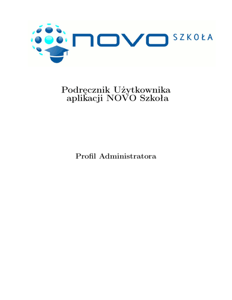 Podręcznik Użytkownika aplikacji NOVO Szkoła Profil Administratora Spis treści 1 Wstęp 4 2 Podstawowe informacje 2.1 Przeglądarka internetowa . . . . . . . . . . . . 2.2 Logowanie i wylogowanie, sesja użytkownika . . 2.2.1 Logowanie . . . . . . . . . . . . . . . . . 2.2.2 Sesja użytkownika . . . . . . . . . . . . 2.2.3 Wylogowanie . . . . . . . . . . . . . . . 2.3 Nawigacja . . . . . . . . . . . . . . . . . . . . . 2.3.1 Przyciski nawigacyjne . . . . . . . . . . 2.3.2 Przyciski do dodawania nowych danych 2.3.3 Przyciski do modyfikacji danych . . . . 2.4 Przyciski do wyszukiwania danych . . . . . . . 2.5 Sortowanie . . . . . . . . . . . . . . . . . . . . . . . . . . . . . . . 6 6 7 7 9 9 10 10 11 12 13 14 3 Wdrożenie krok po kroku 3.1 Etap I. Ustawienia podstawowe . . . . . . . . . . . . . . . . . . . . . . . . . . . . . . . . . . . . . 3.1.1 Krok 1. Zmiana hasła dostępowego do aplikacji . . . . . . . . . . . . . . . . . . . . . . . . 3.1.2 Krok 2. Wprowadzenie danych o bieżącym okresie nauki . . . . . . . . . . . . . . . . . . . 3.1.3 Krok 3. Wprowadzenie danych o szkole . . . . . . . . . . . . . . . . . . . . . . . . . . . . 3.1.4 Krok 4. Wprowadzenie danych o przedmiotach . . . . . . . . . . . . . . . . . . . . . . . . 3.1.5 Krok 5. Wprowadzenie grup ocen dla nauczycieli . . . . . . . . . . . . . . . . . . . . . . . 3.1.6 Krok 6. Wprowadzenie danych o salach . . . . . . . . . . . . . . . . . . . . . . . . . . . . 3.1.7 Krok 7. Wprowadzenie danych o klasach . . . . . . . . . . . . . . . . . . . . . . . . . . . . 3.2 Etap II. Import danych . . . . . . . . . . . . . . . . . . . . . . . . . . . . . . . . . . . . . . . . . 3.2.1 Krok 1. Import danych o nauczycielach . . . . . . . . . . . . . . . . . . . . . . . . . . . . 3.2.2 Krok 2. Import danych o opiekunach uczniów . . . . . . . . . . . . . . . . . . . . . . . . . 3.2.3 Krok 3. Import danych o uczniach . . . . . . . . . . . . . . . . . . . . . . . . . . . . . . . 3.3 Etap III. Pozostałe czynności . . . . . . . . . . . . . . . . . . . . . . . . . . . . . . . . . . . . . . 3.3.1 Krok 1. Przydzielenie przedmiotów nauczycielom . . . . . . . . . . . . . . . . . . . . . . . 3.3.2 Krok 2. Przydzielenie wychowawców do klas . . . . . . . . . . . . . . . . . . . . . . . . . 3.3.3 Krok 3. Przydzielenie przedmiotów do klas . . . . . . . . . . . . . . . . . . . . . . . . . . 3.3.4 Krok 4. Podział klas na grupy i oznaczenie przedmiotów dodatkowych oraz rozszerzonych 3.3.5 Krok 5. Przypisanie opiekunów do uczniów . . . . . . . . . . . . . . . . . . . . . . . . . . 3.3.5.1 Przypisanie zarejestrowanego już w systemie opiekuna do ucznia . . . . . . . . . 3.3.5.2 Przypisanie nowego opiekuna do ucznia . . . . . . . . . . . . . . . . . . . . . . . 3.3.6 Krok 6. Wprowadzanie loginów oraz haseł dla dyrektora i nauczycieli . . . . . . . . . . . 3.3.7 Krok 7. Generowanie loginów i haseł dla uczniów . . . . . . . . . . . . . . . . . . . . . . . 3.3.8 Krok 8. Generowanie loginów i haseł opiekunów uczniów w bieżącym semestrze . . . . . . 3.3.9 Krok 9. Drukowanie wygenerowanych haseł dla opiekunów i uczniów . . . . . . . . . . . . 3.3.10 Krok 10. Wprowadzenie planu lekcji . . . . . . . . . . . . . . . . . . . . . . . . . . . . . . 3.3.11 Krok 11. Dodanie dni wolnych od zajęć lekcyjnych . . . . . . . . . . . . . . . . . . . . . 3.4 Etap IV. Przedstawienie podstawowych funkcjonalności dla dyrektorów i nauczycieli. . . . . . . . 3.4.1 Logowanie do aplikacji . . . . . . . . . . . . . . . . . . . . . . . . . . . . . . . . . . . . . . 16 16 16 19 24 29 43 49 52 57 57 68 75 92 92 92 93 93 94 94 95 96 97 97 98 98 100 101 101 2 . . . . . . . . . . . . . . . . . . . . . . . . . . . . . . . . . . . . . . . . . . . . . . . . . . . . . . . . . . . . . . . . . . . . . . . . . . . . . . . . . . . . . . . . . . . . . . . . . . . . . . . . . . . . . . . . . . . . . . . . . . . . . . . . . . . . . . . . . . . . . . . . . . . . . . . . . . . . . . . . . . . . . . . . . . . . . . . . . . . . . . . . . . . . . . . . . . . . . . . . . . . . . . . . . . . . . . . . . . . . . . . . . . . . . . . . . . . . . . . . . . . . . . . . . . . . . . . . . . . . . . . . . . . . . . . . . . . . . . . . . . . . . . . . . . . . . . . . . 3.4.2 3.4.3 3.4.4 3.4.5 3.4.6 3.4.7 3.4.8 Uzupełnianie tematów lekcji i frekwencji przez nauczycieli . . . . . . . Usprawiedliwianie nieobecności przez wychowawców . . . . . . . . . . 3.4.3.1 Ręczne usprawiedliwianie nieobecności uczniów . . . . . . . . 3.4.3.2 Automatyczne usprawiedliwianie nieobecności ucznia . . . . Wystawianie ocen . . . . . . . . . . . . . . . . . . . . . . . . . . . . . Wprowadzanie zaplanowanych zadań dla klasy do dziennika lekcyjnego ocen z zaplanowanych zadań . . . . . . . . . . . . . . . . . . . . . . . Przeglądanie statystyk frekwencji uczniów . . . . . . . . . . . . . . . . Wykaz tematów zajęć . . . . . . . . . . . . . . . . . . . . . . . . . . . Generowanie raportów dla dyrektora . . . . . . . . . . . . . . . . . . . 3.4.8.1 Statystyka nauczycieli . . . . . . . . . . . . . . . . . . . . . . 3.4.8.2 Dzienny raport nieobecności i spóźnień uczniów . . . . . . . 3.4.8.3 Nauczyciele - liczba ocen cząstkowych . . . . . . . . . . . . . 3.4.8.4 Uczniowie z określoną średnią ocen cząstkowych . . . . . . . 4 Wdrożenie - ustawienia opcjonalne 4.1 Modyfikacja słownika stylów . . . . . . . . . . . . . . . . 4.2 Dodanie poziomów nauki . . . . . . . . . . . . . . . . . 4.3 Dodanie zestawu ocen . . . . . . . . . . . . . . . . . . . 4.4 Modyfikacja słownika ocen . . . . . . . . . . . . . . . . 4.5 Modyfikacja kryteriów przyznawania ocen końcowych . . 4.6 Dodanie profili nauczania . . . . . . . . . . . . . . . . . 4.7 Dodanie semestru do słownika semestrów . . . . . . . . 4.8 Modyfikacja słownika godzin lekcyjnych . . . . . . . . . 4.9 Dodanie kolorów do słownika kolorów . . . . . . . . . . 4.10 Modyfikacja listy przedmiotów na świadectwie . . . . . 4.11 Ustawienia parametr