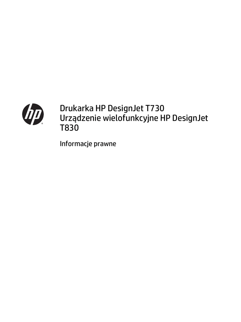 Drukarka HP DesignJet T730 Urządzenie wielofunkcyjne HP DesignJet T830 Informacje prawne © 2015 Copyright HP Development Company, L.P. Wydanie pierwsze Informacje prawne Informacje zawarte w niniejszym dokumencie mogą ulec zmianie bez uprzedzenia. Firma HP nie ponosi odpowiedzialności za ewentualne błędy techniczne czy redakcyjne występujące w niniejszym dokumencie. Spis treści 1 Środki ostrożności ......................................................................................................................................... 1 Podłączenie do gniazdka sieci elektrycznej .......................................................................................................... 1 Obsługa urządzenia ............................................................................................................................................... 1 Poddawanie urządzenia czynnościom serwisowym ............................................................................................. 2 Ostrzeżenie ............................................................................................................................................................ 2 2 Umowa licencyjna na oprogramowanie HP ....................................................................................................... 3 3 Oprogramowanie typu Open Source ................................................................................................................ 6 Potwierdzenia dotyczące oprogramowania typu Open Source ........................................................................... 6 Oferta pisemna dotycząca oprogramowania typu Open Source .......................................................................... 6 4 Wymagania środowiskowe ............................................................................................................................. 7 Program zgodności produktu z zasadami ochrony środowiska ........................................................................... 7 Ochrona środowiska — wskazówki ...................................................................................................................... 7 Karty charakterystyki preparatu niebezpiecznego .............................................................................................. 7 Substancje chemiczne ........................................................................................................................................... 7 Tworzywa sztuczne ............................................................................................................................................... 7 Program recyklingu ............................................................................................................................................... 7 Alkohol izopropylowy ............................................................................................................................................ 8 Alkohol etylowy ..................................................................................................................................................... 8 Usuwanie baterii (Kalifornia) ................................................................................................................................. 8 Bateria litowa ......................................................................................................................................................... 8 Usuwanie baterii (Tajwan) ..................................................................................................................................... 8 Dyrektywa dotycząca baterii (UE) ......................................................................................................................... 8 Usuwanie zużytych urządzeń przez użytkowników (Unia Europejska, Indie) ...................................................... 9 Program recyklingu materiałów eksploatacyjnych HP ......................................................................................... 9 Recykling sprzętu elektronicznego ....................................................................................................................... 9 Turcja — ograniczenia dotyczące używania substancji niebezpiecznych ........................................................... 9 Ukraina — ograniczenia dotyczące używania substancji niebezpiecznych ......................................................... 9 Indie — ograniczenia dotyczące używania substancji niebezpiecznych ............................................................. 9 PLWW iii Informacje na temat standardu Energy Star ...................................................................................................... 10 Chiny — ograniczenia dotyczące używania substancji niebezpiecznych .......................................................... 10 Dania .................................................................................................................................................................... 11 5 Uwagi prawne ............................................................................................................................................. 12 Numer rejestracyjny modelu ............................................................................................................................... 12 Emisja hałasu przez produkt ............................................................................................................................... 12 Stany Zjednoczone: Kompatybilność elektromagnetyczna ............................................................................... 12 Narażenie na promieniowanie radiowe .............................................................................................................. 13 Kanada: Kompatybilność elektromagnetyczna .................................................................