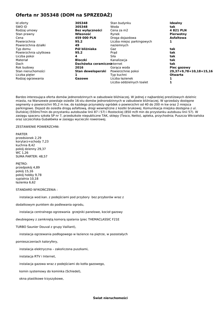 Oferta nr 305348 (DOM na SPRZEDAŻ)