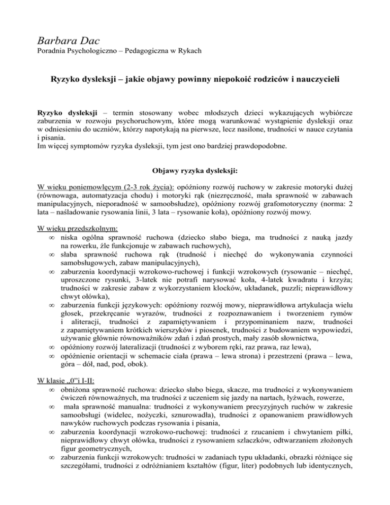 Ryzyko dysleksji - Poradnia Psychologiczno