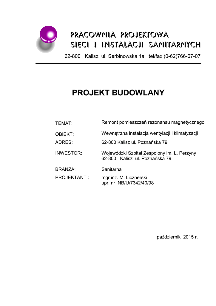 Projekt instalacji wentylacji mechanicznej